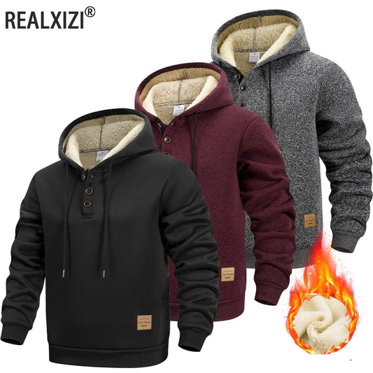 Winter Men's Thickened Warm Hoodies Outdoor Windproof Fleece Lining Long Sleeve Pullover Men Casual Sweatshirt Streetwear