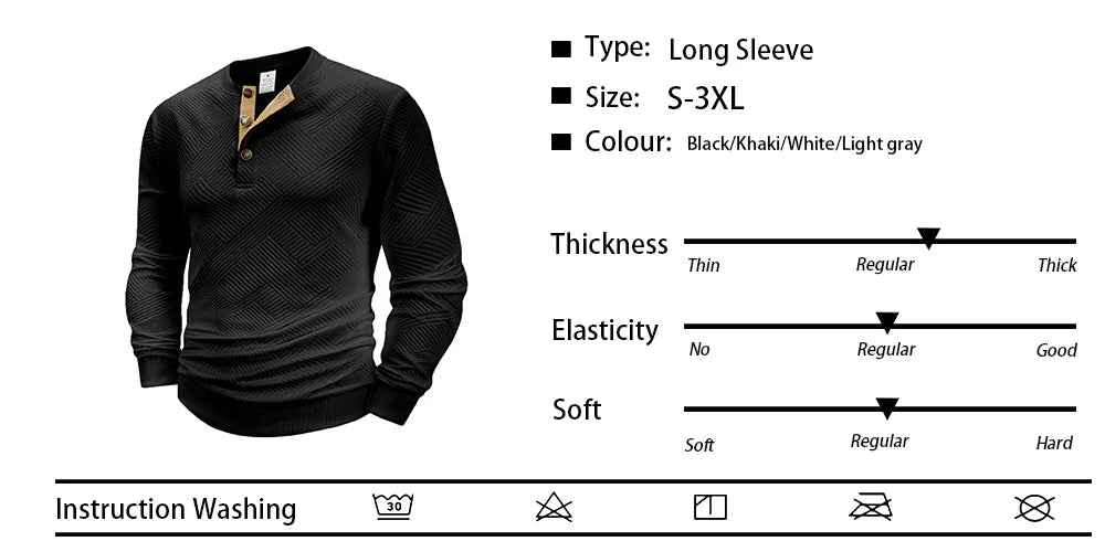 Men's Long Sleeve Button Down T-Shirts Autumn Henley Collar Casual High Quality Crew Neck Hoodie Leisure Pullover Mens T Shirts