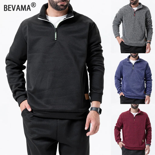 Spring Autumn Men's Standing Collar Half Zipper Sportswear Long Sleeve Sweatshirts Men Casual Knitted Pullovers Daily Coats