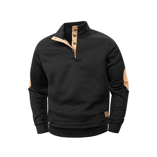 Men's Warm Sweater Outdoor Leisure Button Stand up Neck Spliced Loose Pullover Sweatshirts Casual Outdoor Streetwear for Men