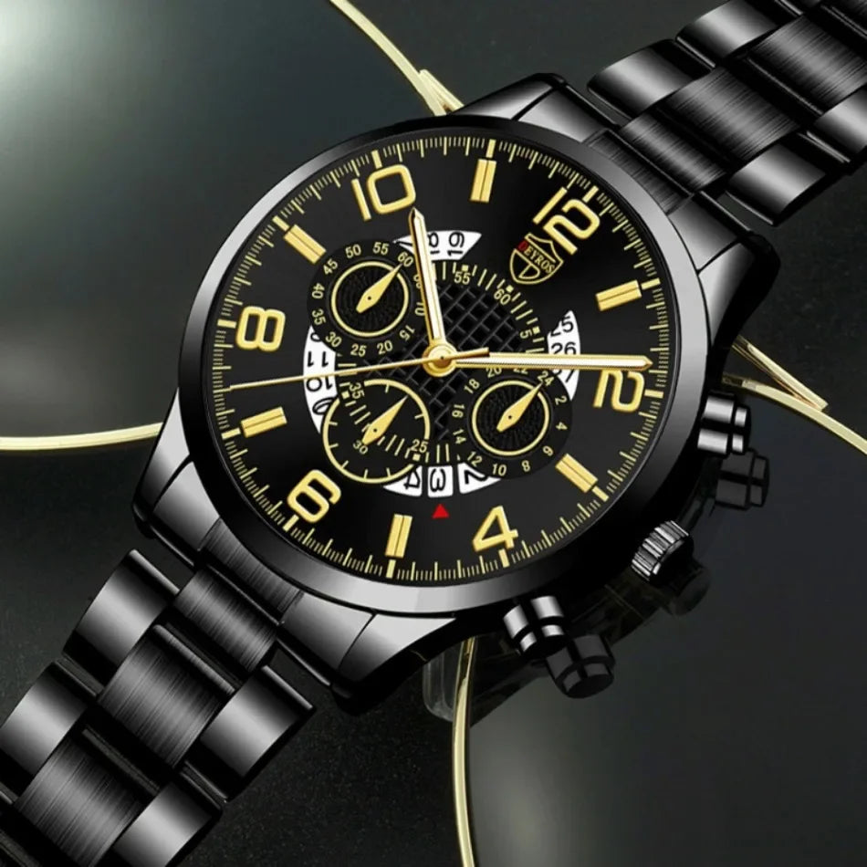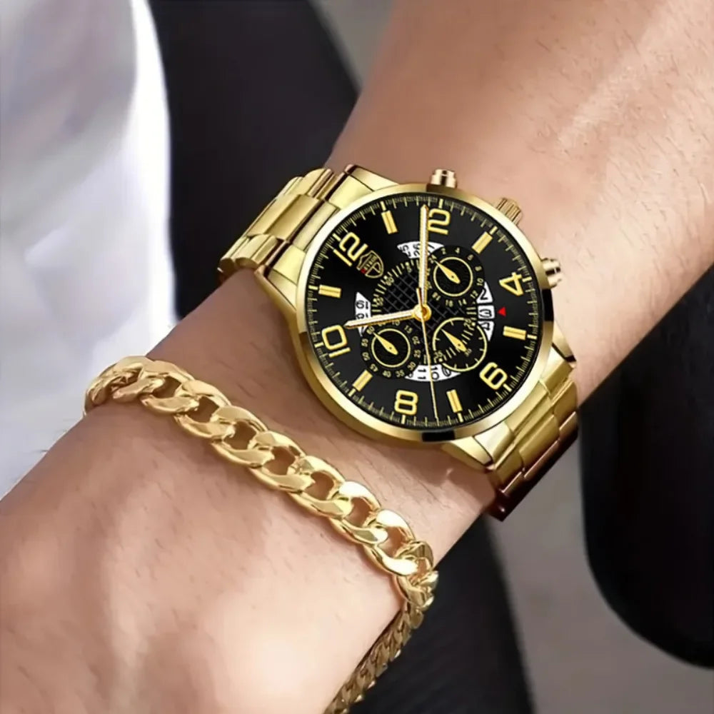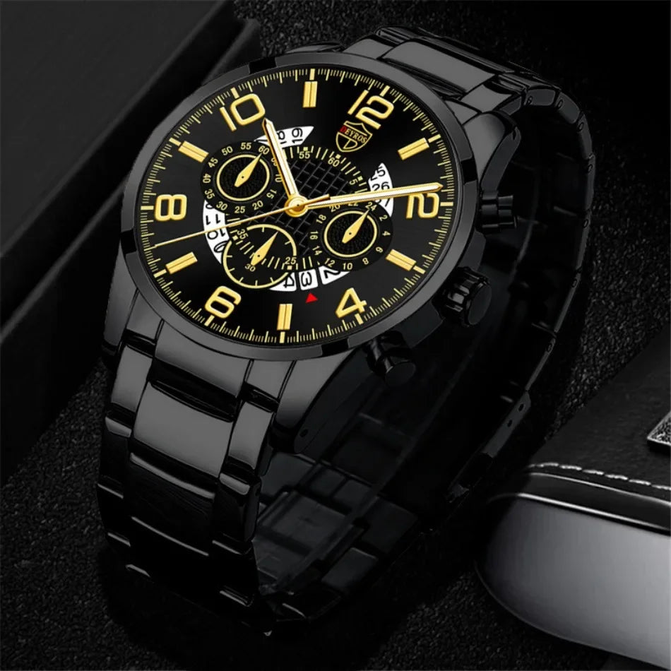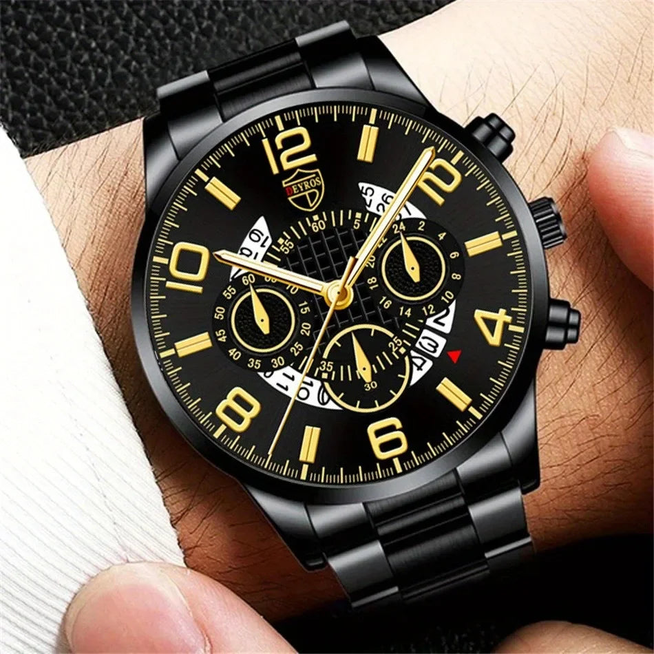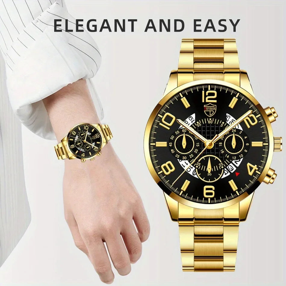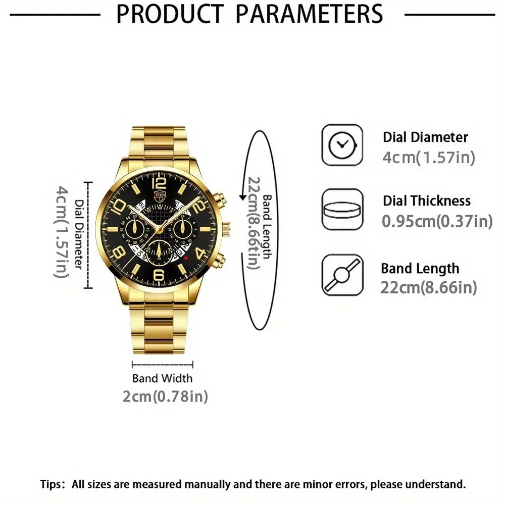 2Pcs/Set Men's Fashion Luxury Watch Round Alloy Analog Mens Watch Casual Quartz Wrist Watch for Men Birthday Father's Day Gift