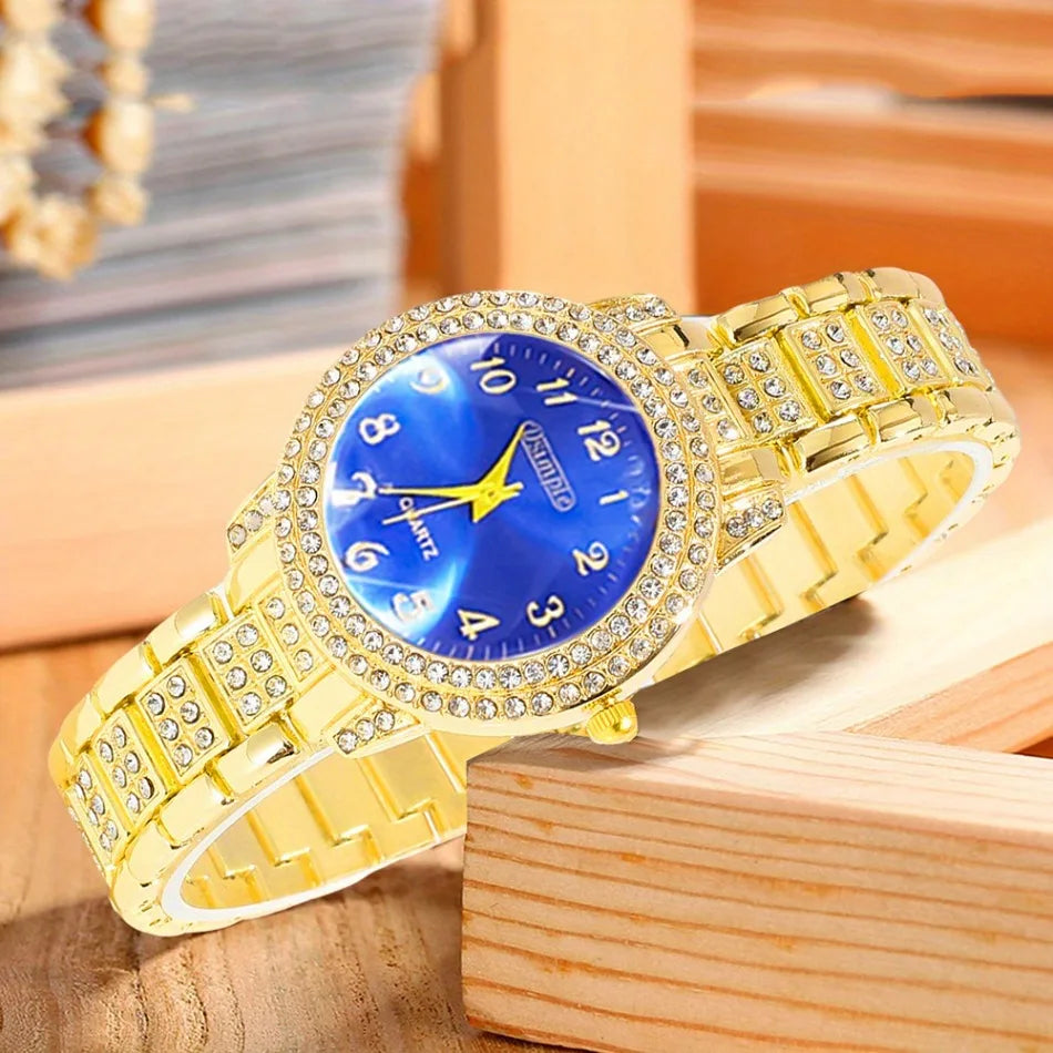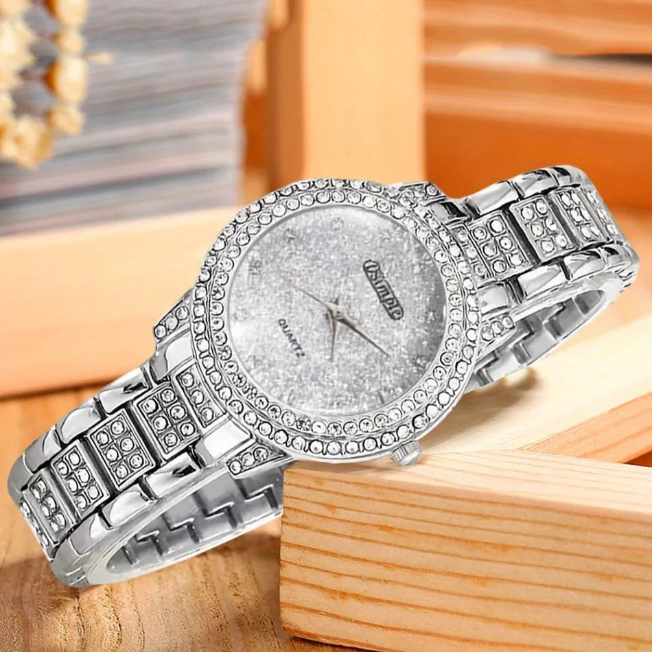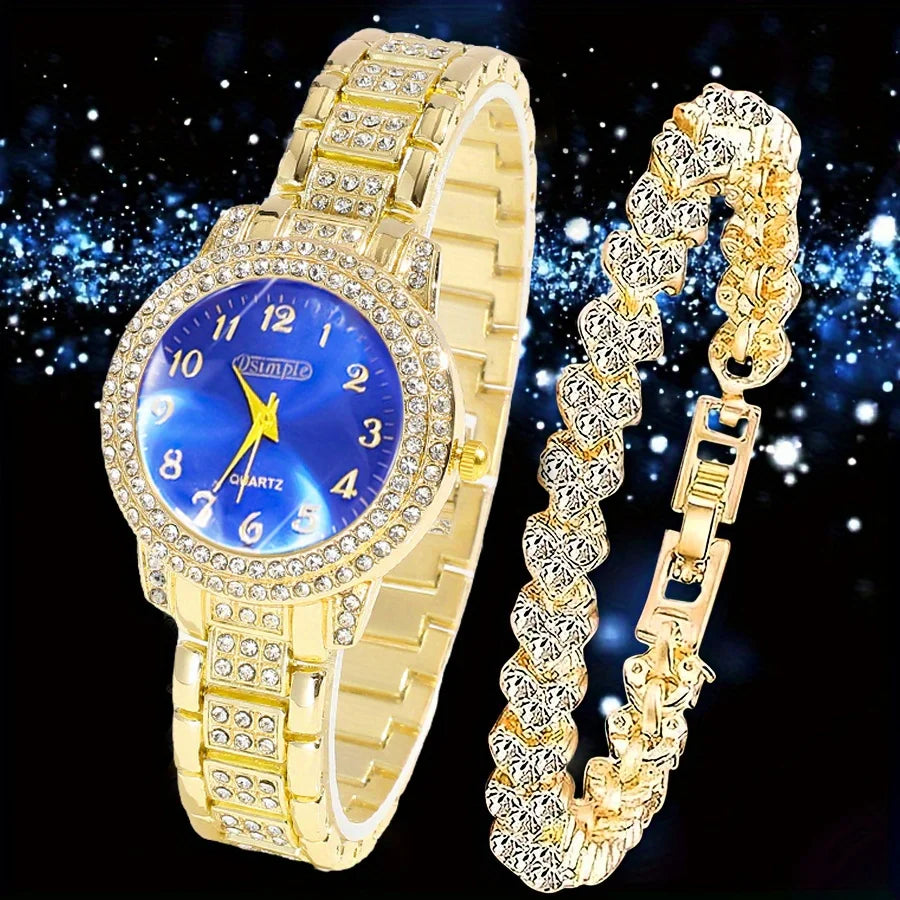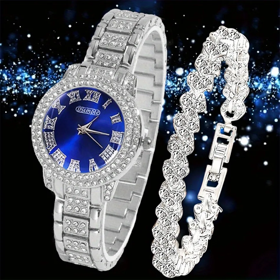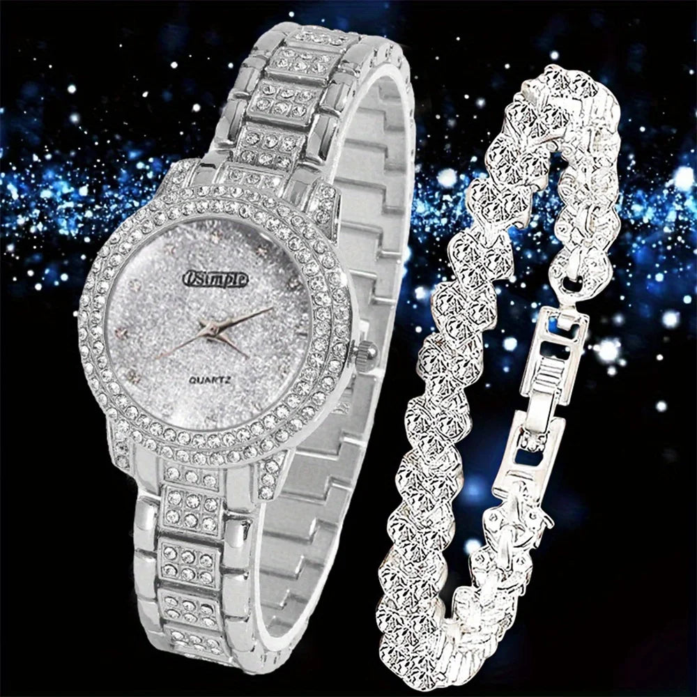 2pcs Women'S Watch & Bracelet Set - Elegant Quartz Watch with Matching Bracelet, Casual Light Luxury Jewelry Gift for Women