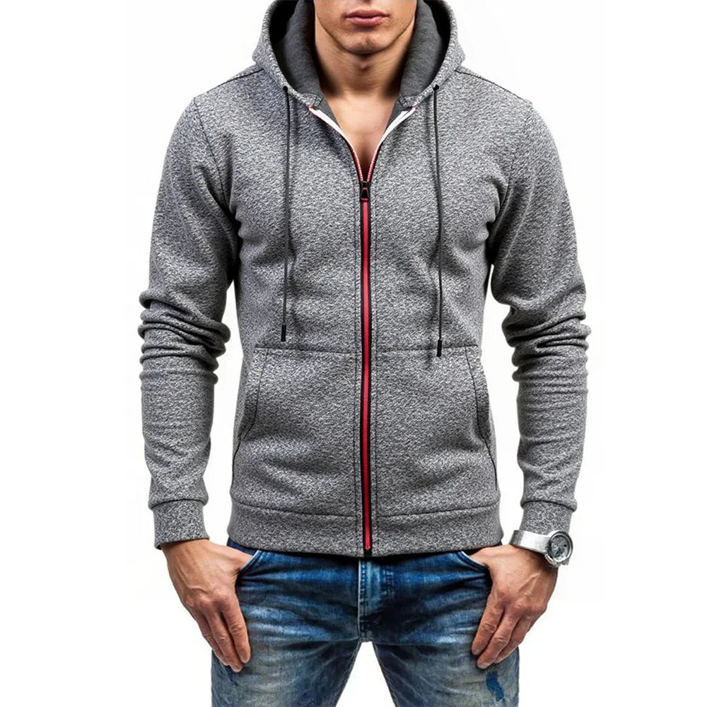 Autumn Men's Casual Jacket Slim Fit Zipper Hooded Sweatshirts Solid Color Coats Sportswear Male Tracksuit Hoodie Streetwear