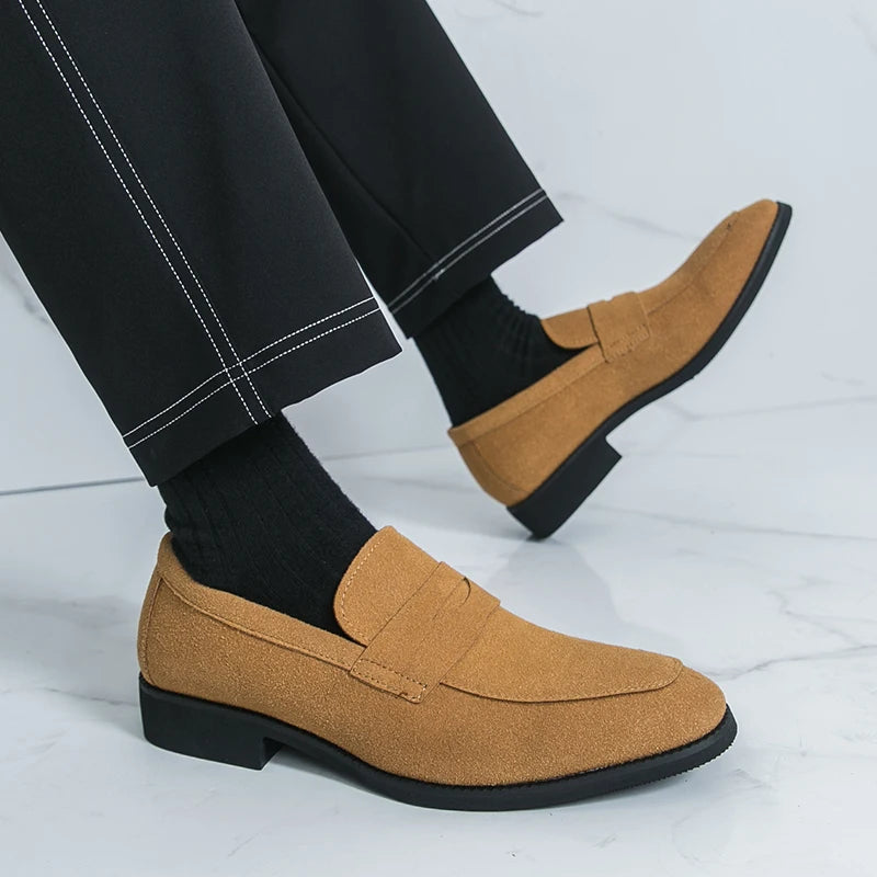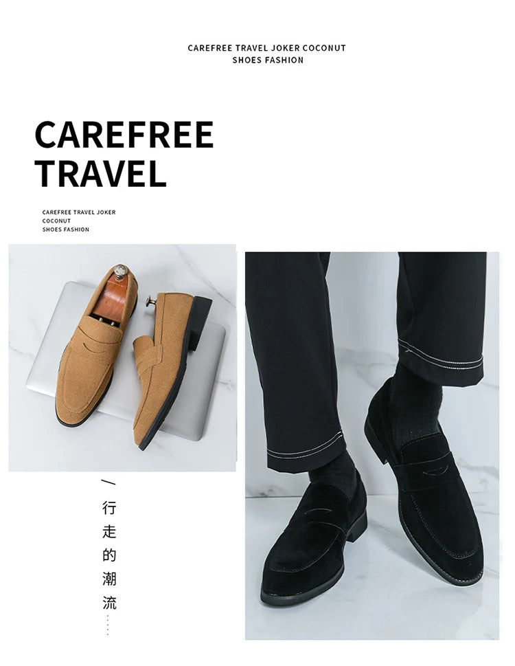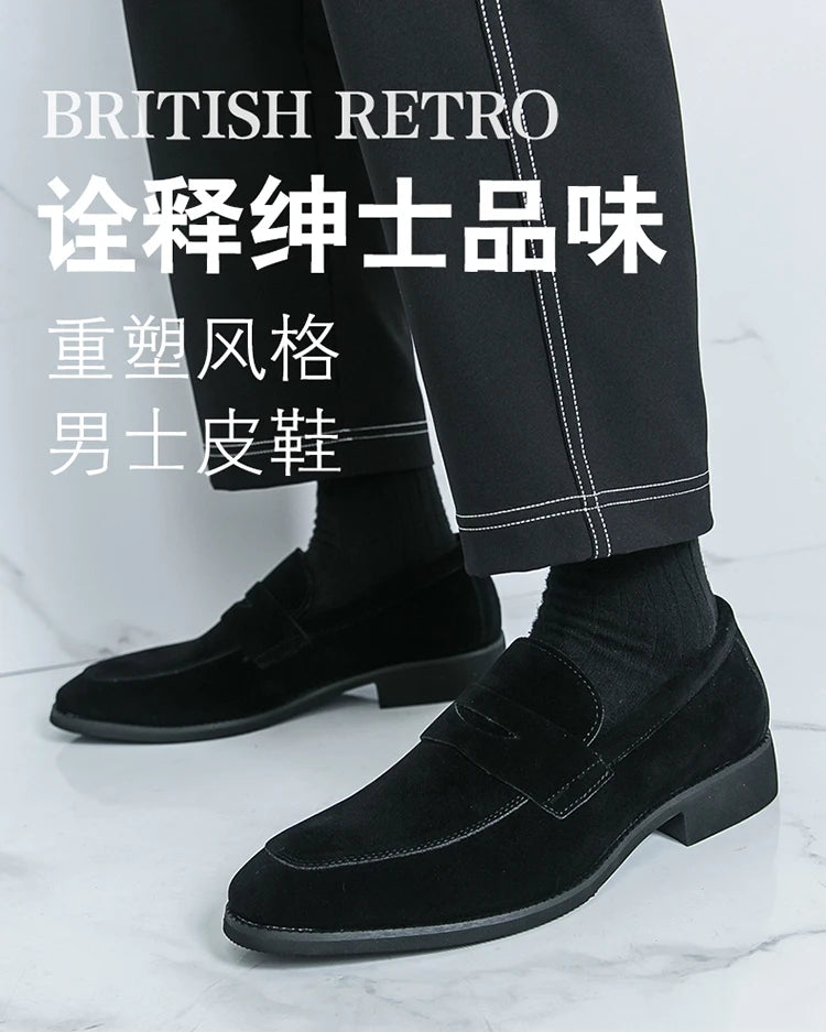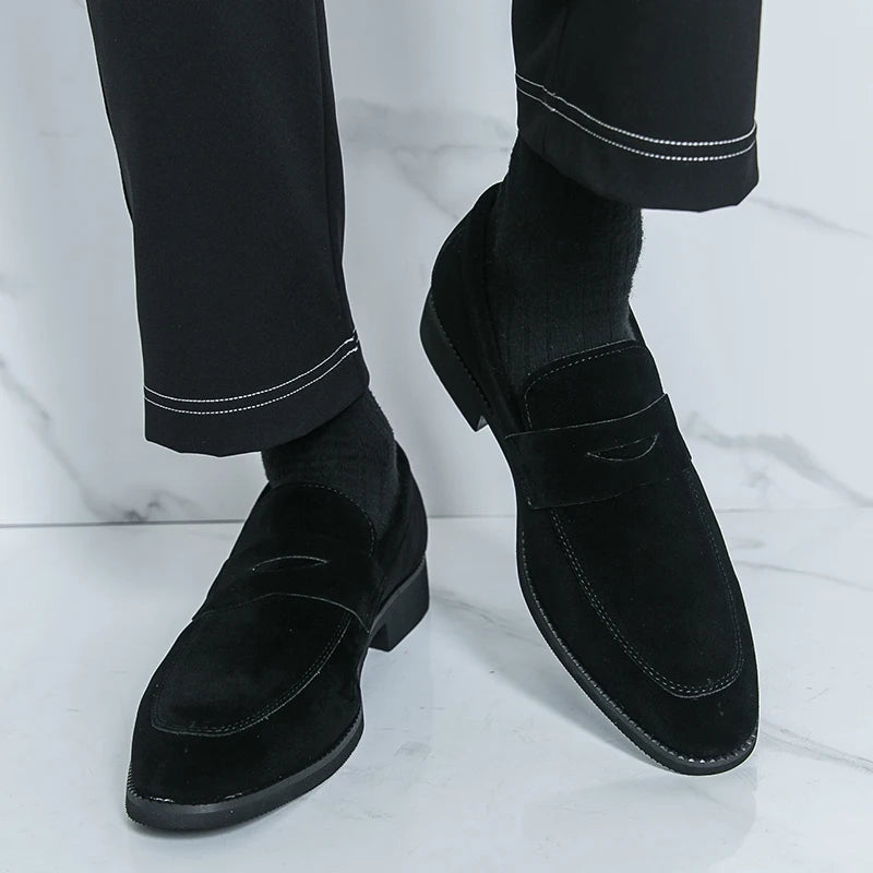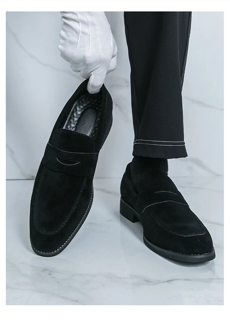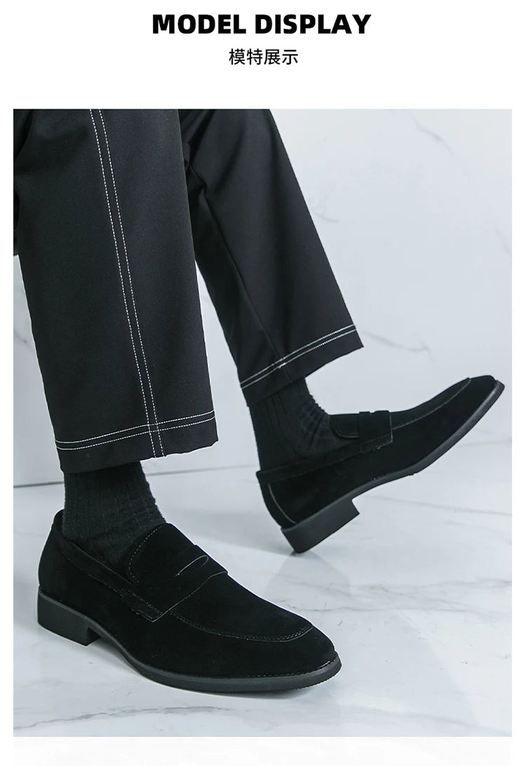 Classic Black Man Leather Shoes Pointed Suede Loafers Men Comfortable Moccasins For Men Casual Business Shoes zapatos de cuero