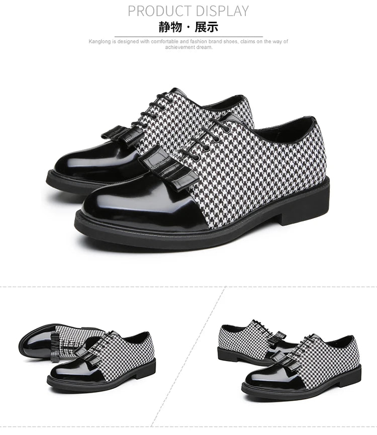 Classic Bow Leather Shoes Men Large Size 47 Comfortable Lace-Up Men's Wedding Shoes Business Casual Party Shoes Man Dress Shoes