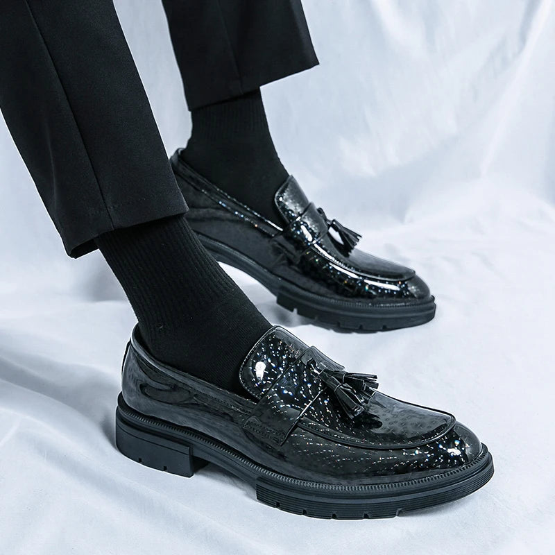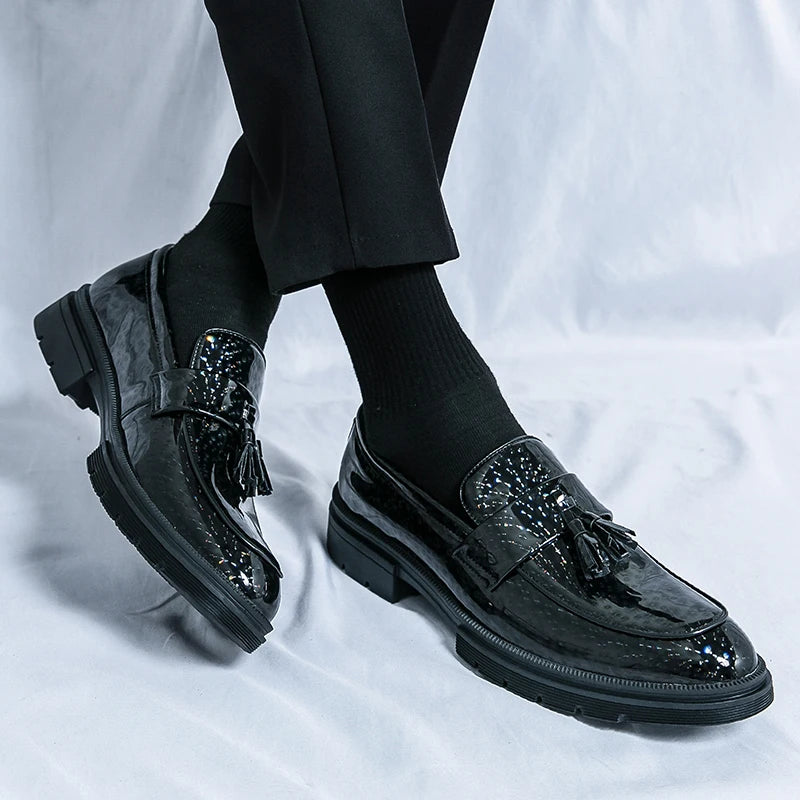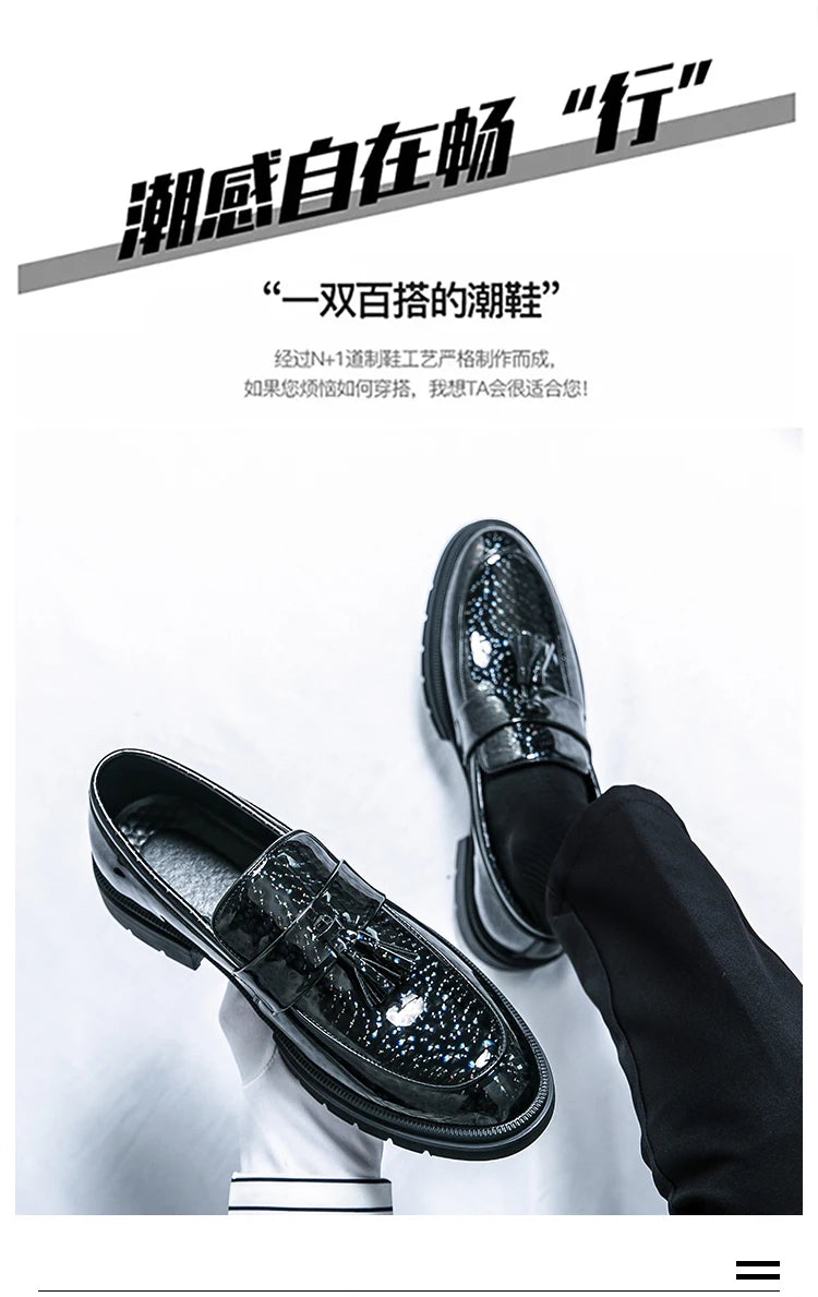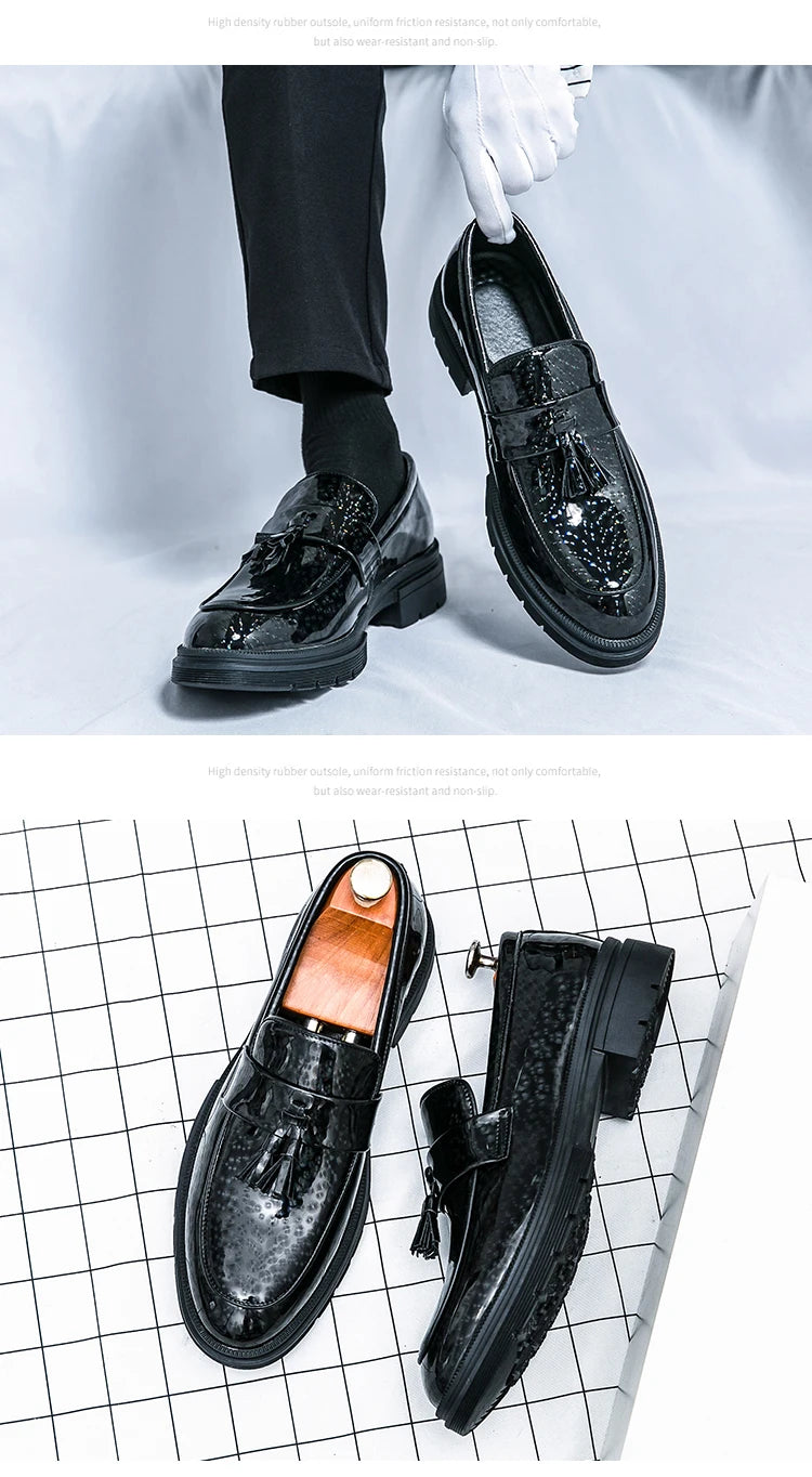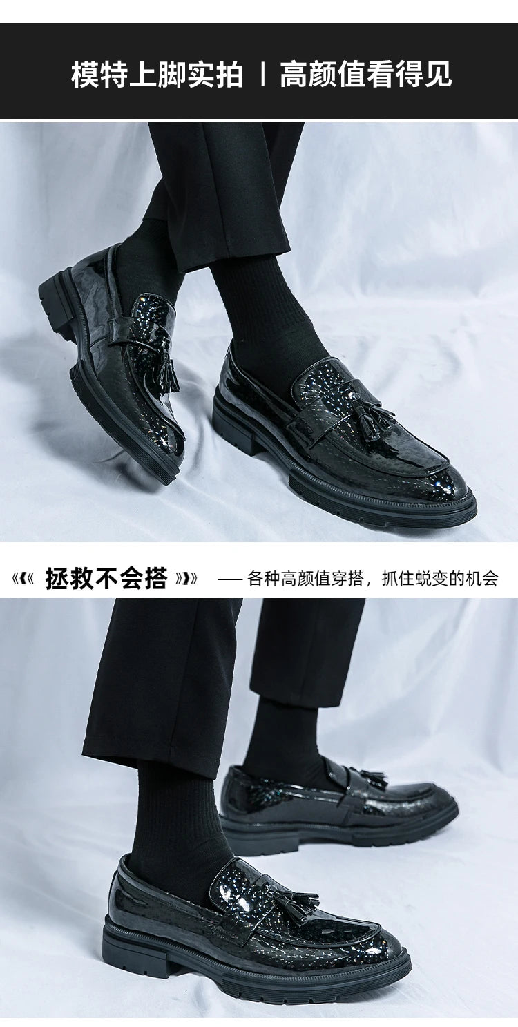 Fashion Tassel Leather Shoes for Men Comfort Pointed Shiny Man Wedding Shoes Slip-On Bussiness Dress Shoes Man zapatos de cuero