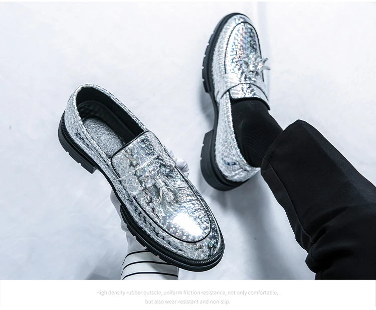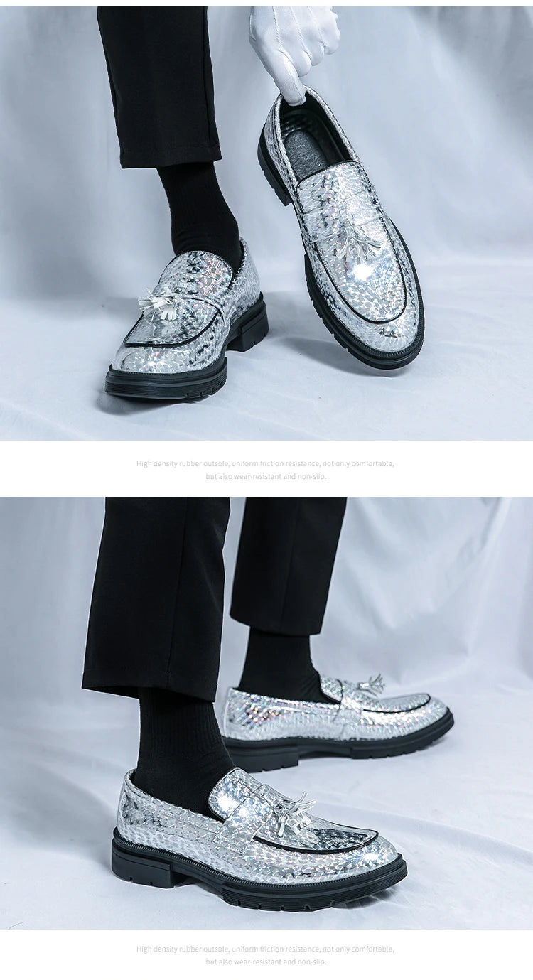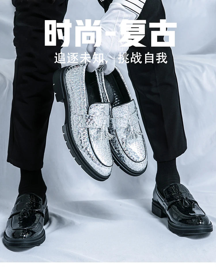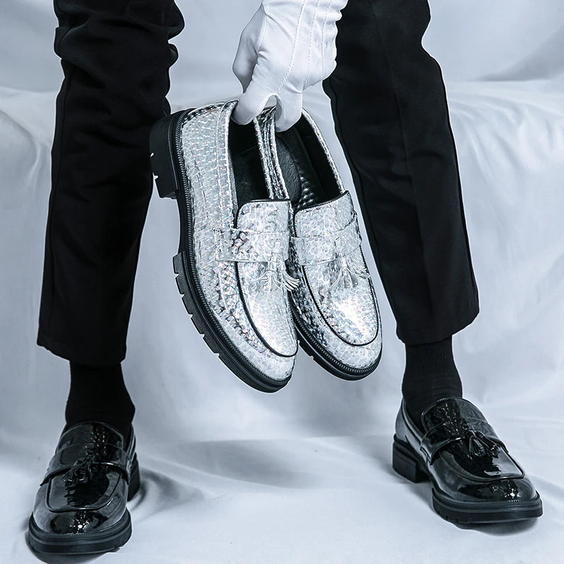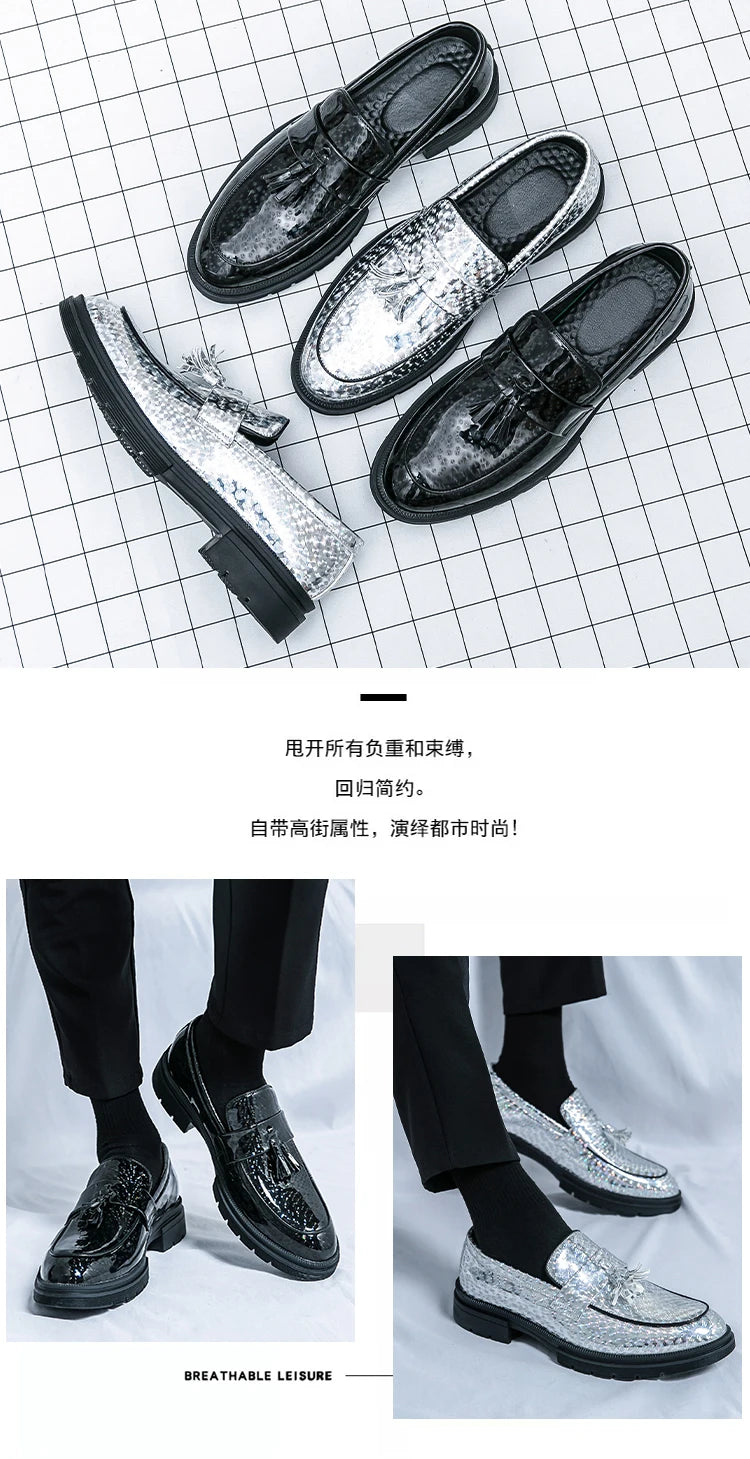 Fashion Tassel Leather Shoes for Men Comfort Pointed Shiny Man Wedding Shoes Slip-On Bussiness Dress Shoes Man zapatos de cuero