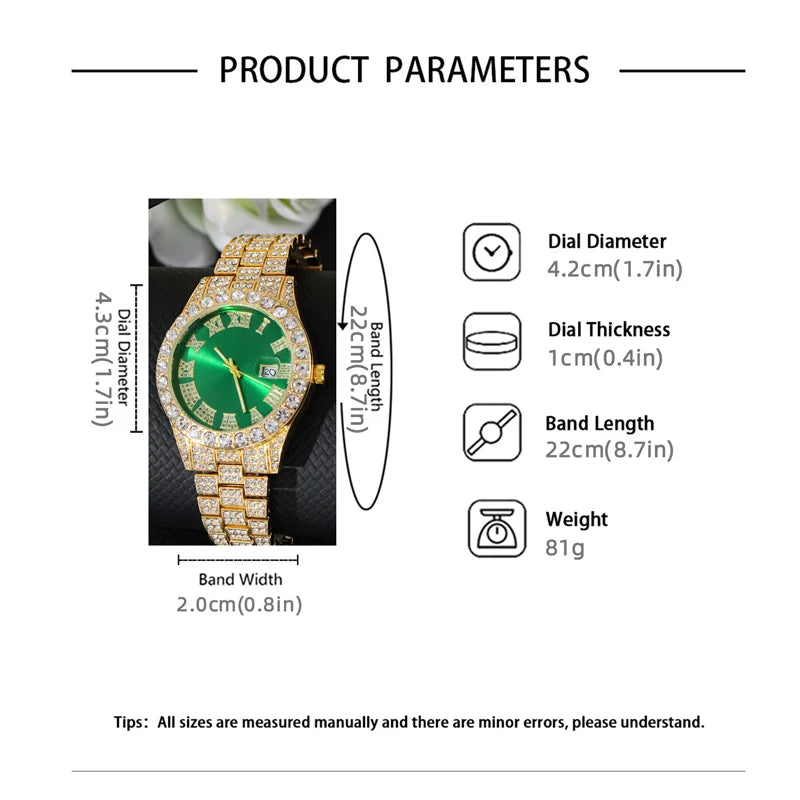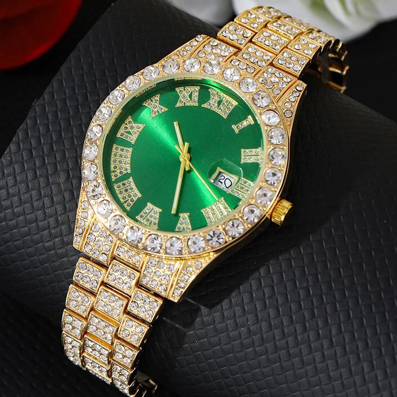 Hip Hop Fashion Watch for Men Full Diamond Around Luxury Quartz Mens Sports Watches Silver Gold