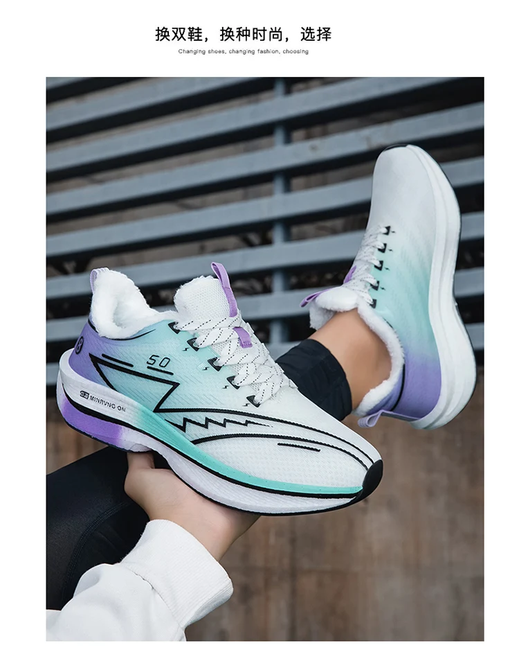 Hot Carbon Plate Running Shoes Men Trainers Comfort Warm Plush Sneakers Man Non-slip Light Women's Sport Shoes zapatillas hombre