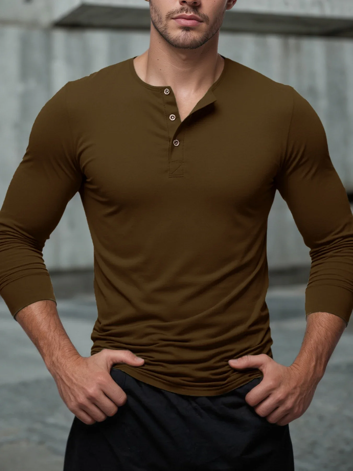 Men's Long Sleeved Henley Neck T-shirt Slim Fit Bottoming Shirt Fitness Tops Tees Button Neck Casual Cozy Tshirt
