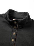 Men's Warm Sweater Outdoor Leisure Button Stand up Neck Spliced Loose Pullover Sweatshirts Casual Outdoor Streetwear for Men