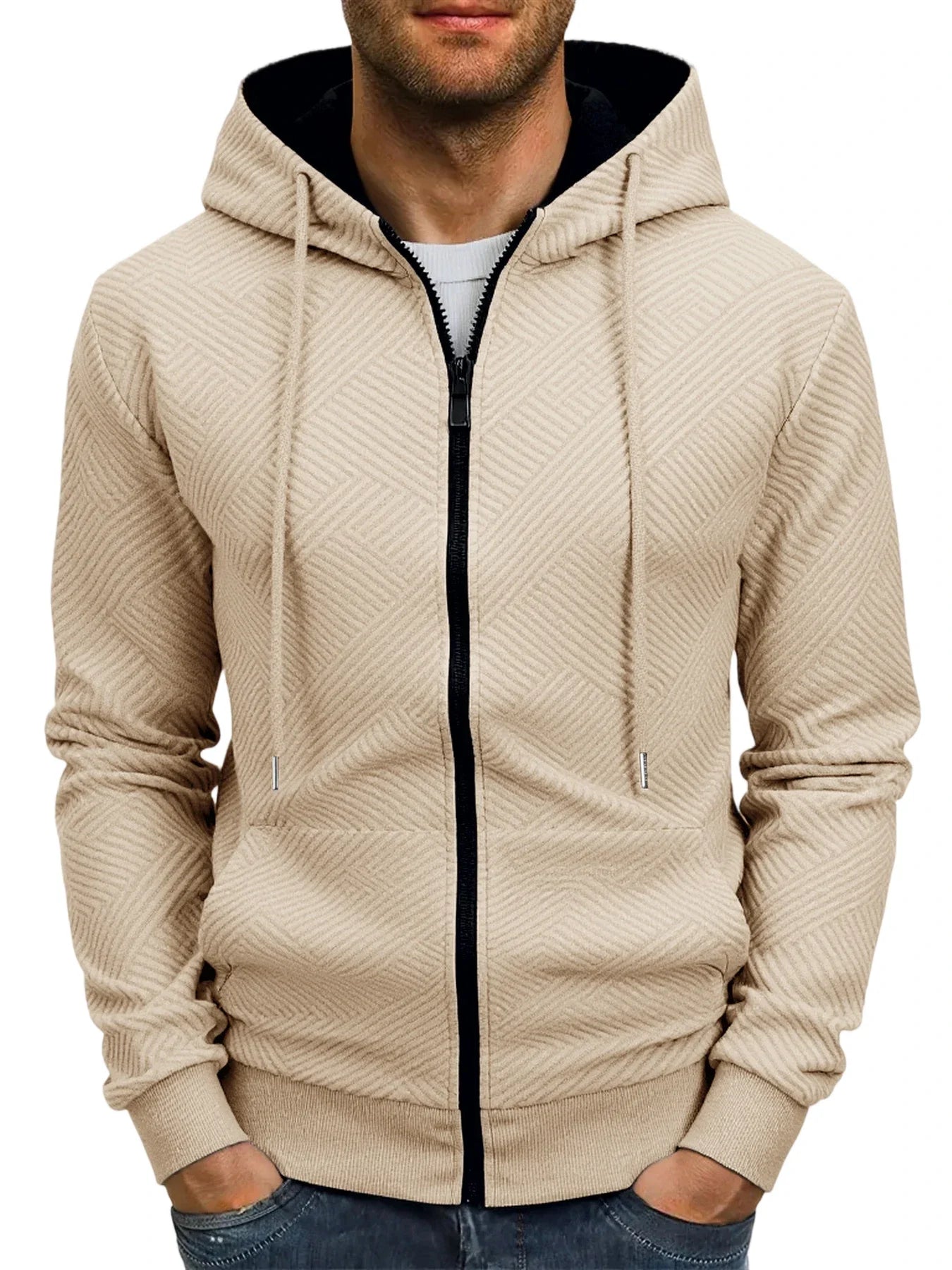 Men's Zipper Hooded Sweatshirt Autumn and Winter Outdoor Warm Jacket Coat Sportswear Men Slim Fit Casual Jacket Streetwear