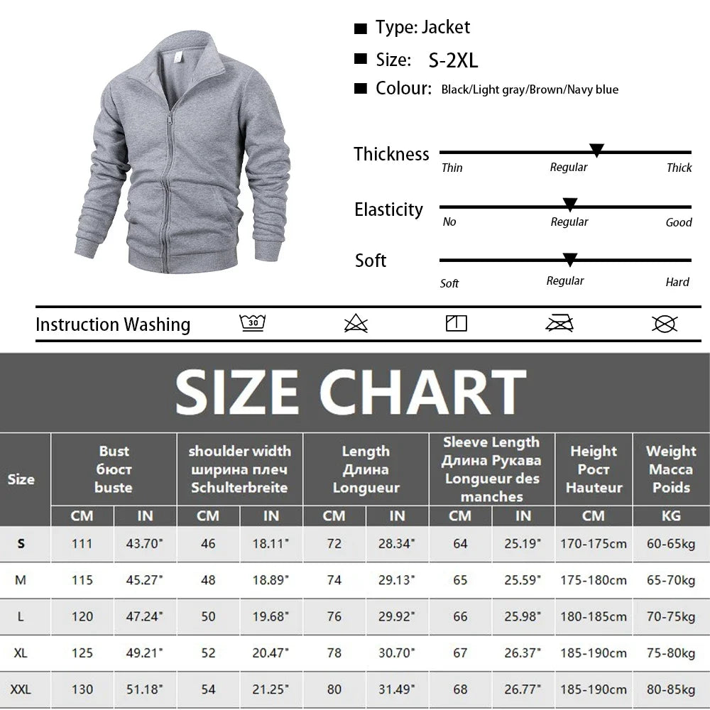 Spring Autumn Men's Zipper Jacket Coats Solid Color Warm Long Sleeve Sweatshirts Outdoor Slim Fit Sportswear Jackets Streetwear