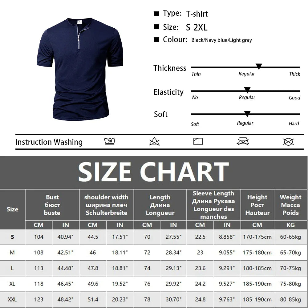 Summer Men's Short Sleeve Solid Color Zipper Collar Shirt Casual Sports T-Shirt Streetwear Daily Outdoor Activities Men's Top