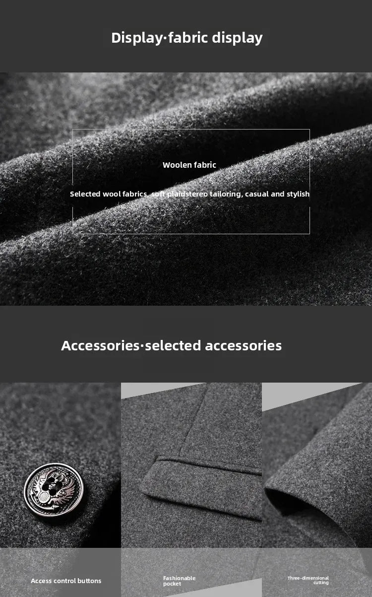 Thickened Woolen Men's Coat Mid-Length Casual Style Autumn Winter Outerwear Jacket for Men Comfortable Fit AE Stock Item