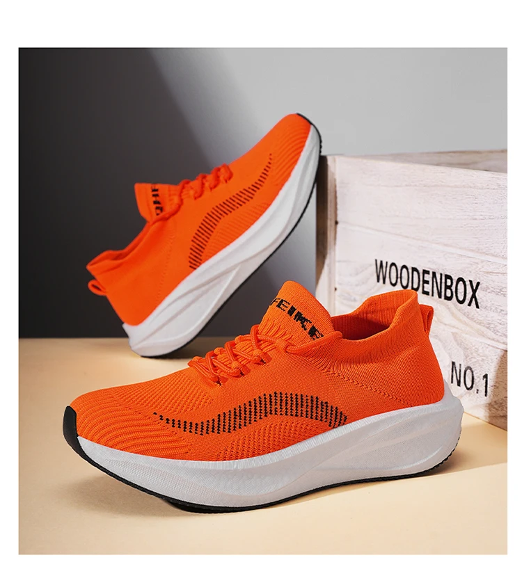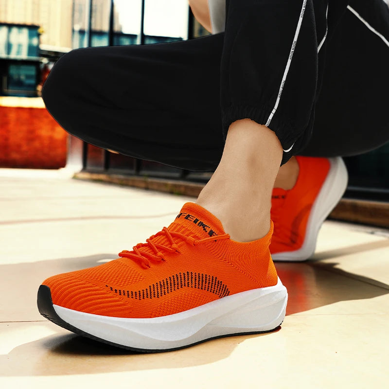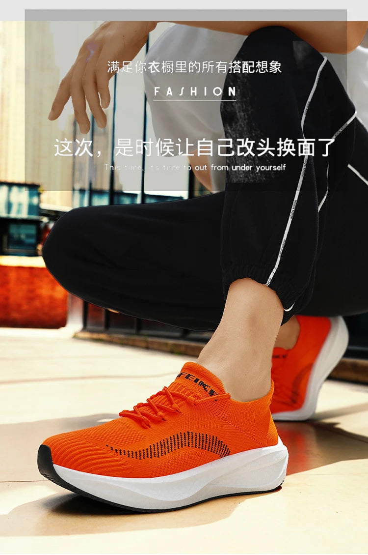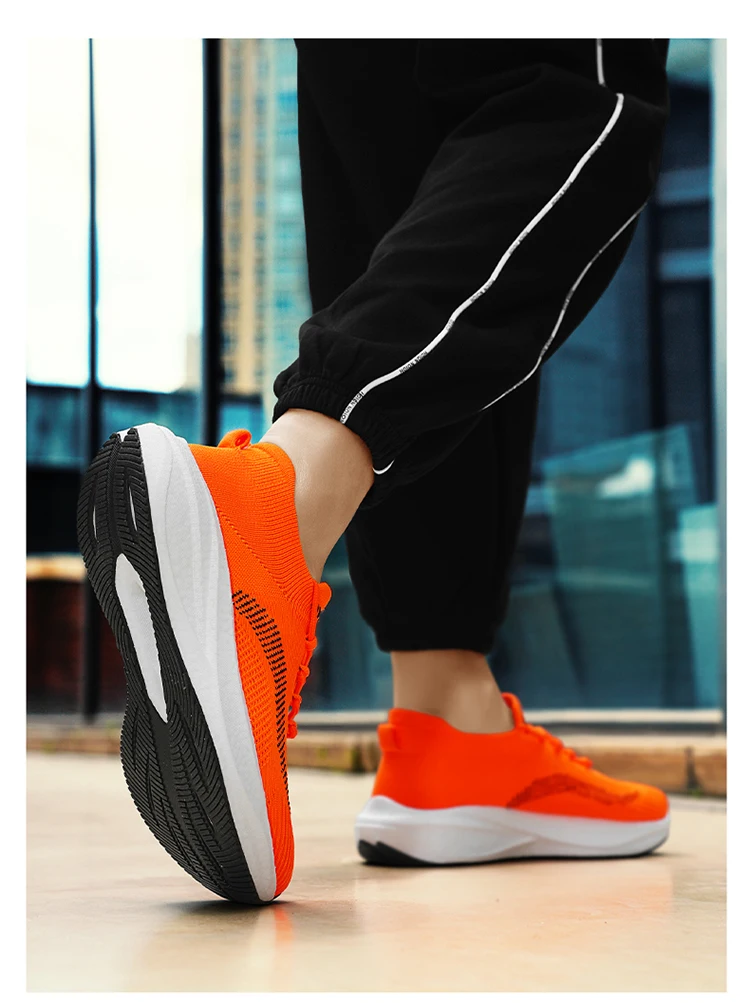Unisex Orange Running Shoes Man Non-slip Light Men's Casual Sneakers Knit Breathable Man Trainers Large Size 46 tenis masculino