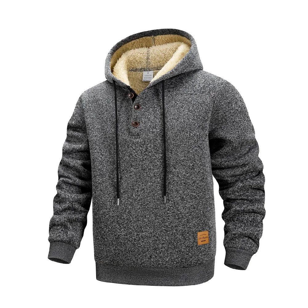 Winter Men's Thickened Warm Hoodies Outdoor Windproof Fleece Lining Long Sleeve Pullover Men Casual Sweatshirt Streetwear