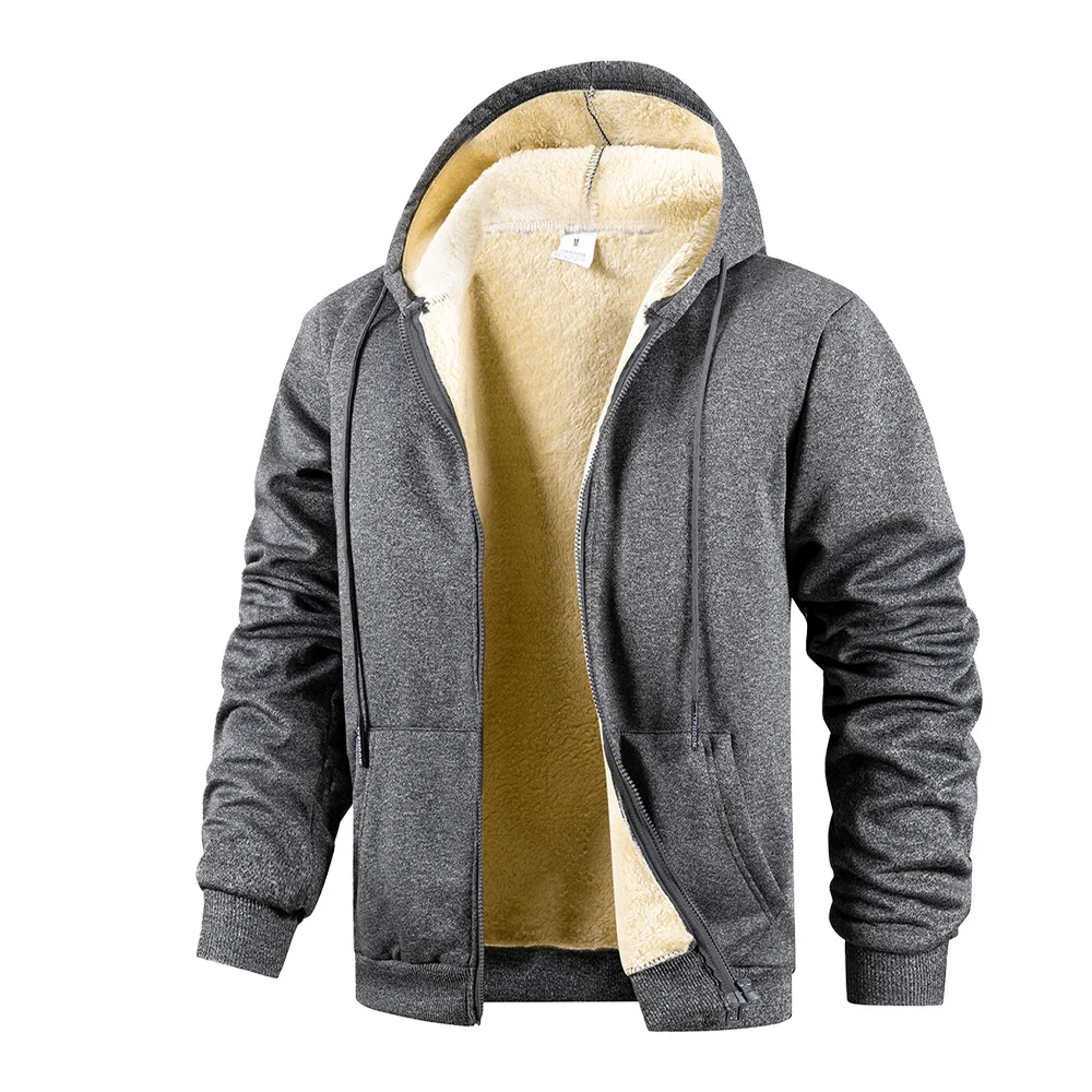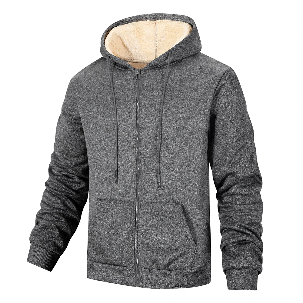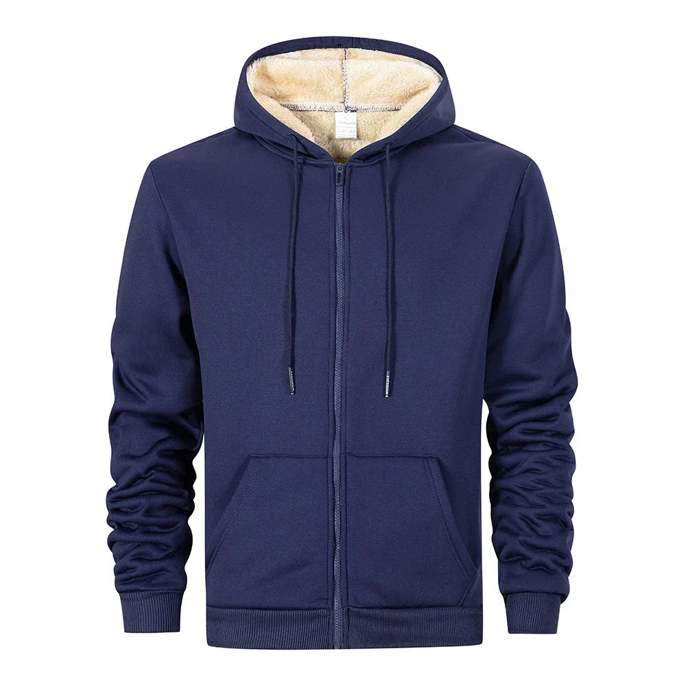 Winter Men's Zipper Hoodies Thicken Warm Jackets Long Sleeve Sweatshirts Casual Sports Fleece Black Coats Hooded Men Coat