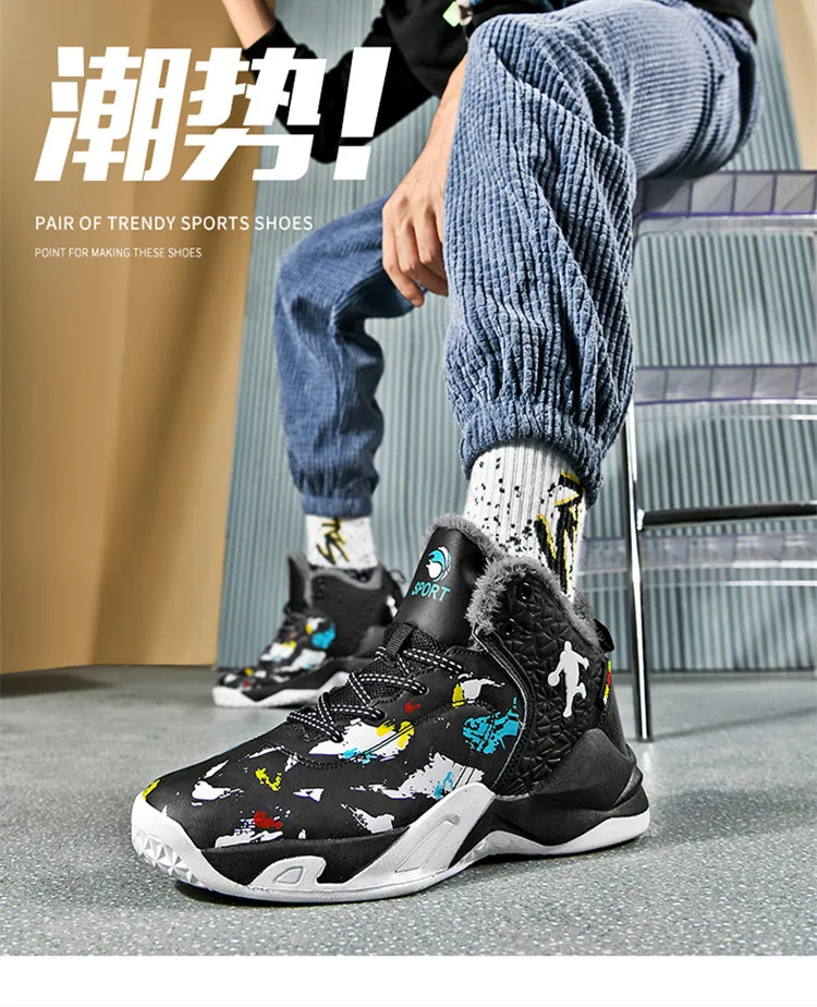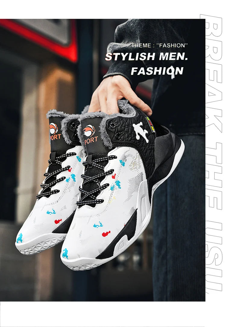 Winter Plush Warm Men Basketball Shoes Hot Sale Brand Men's Basketball Sneakers Anti-Slip Field Training High Top Sneaker Man