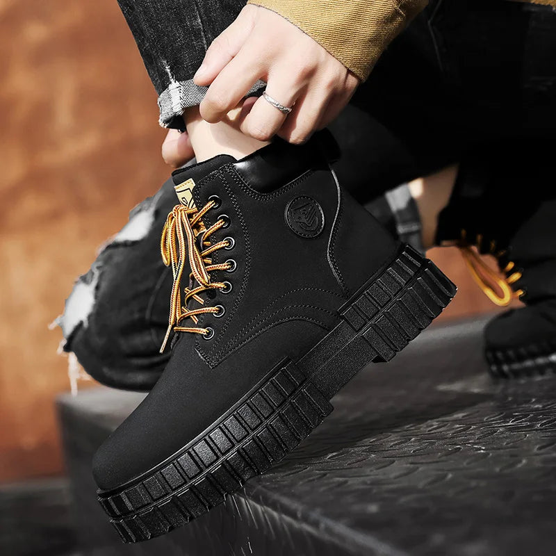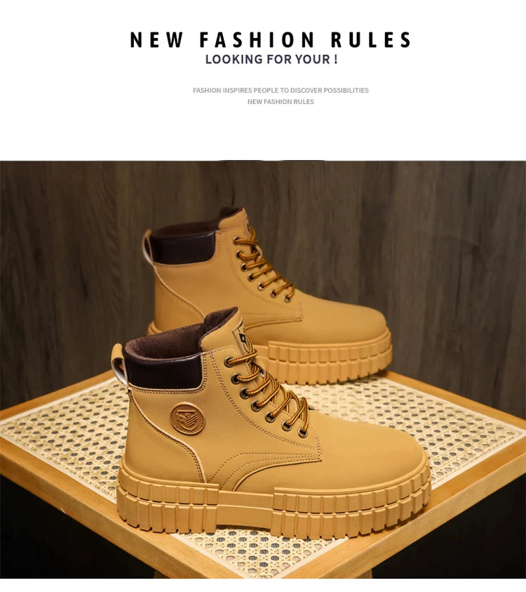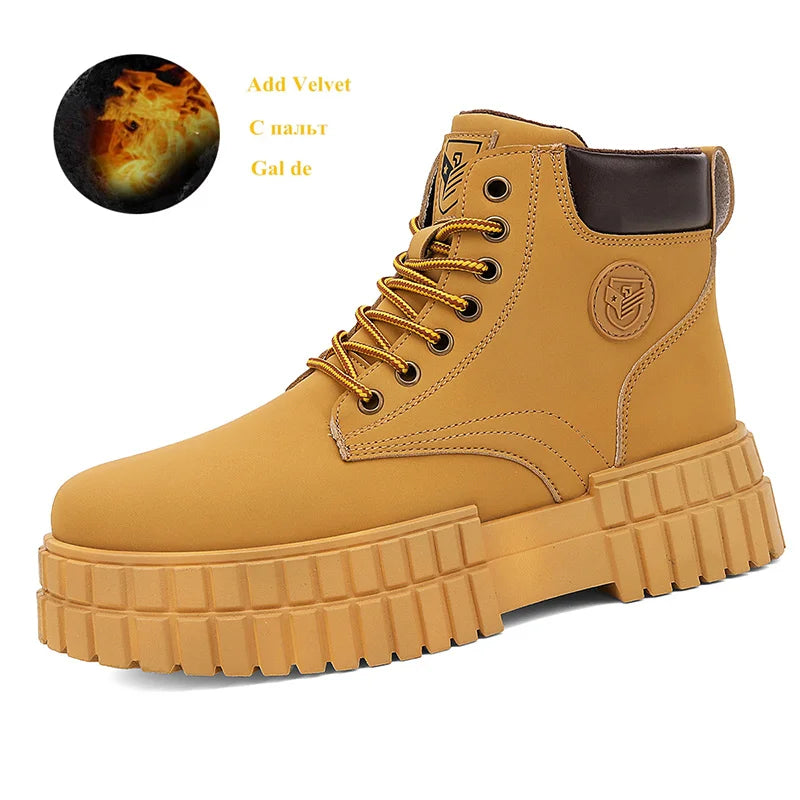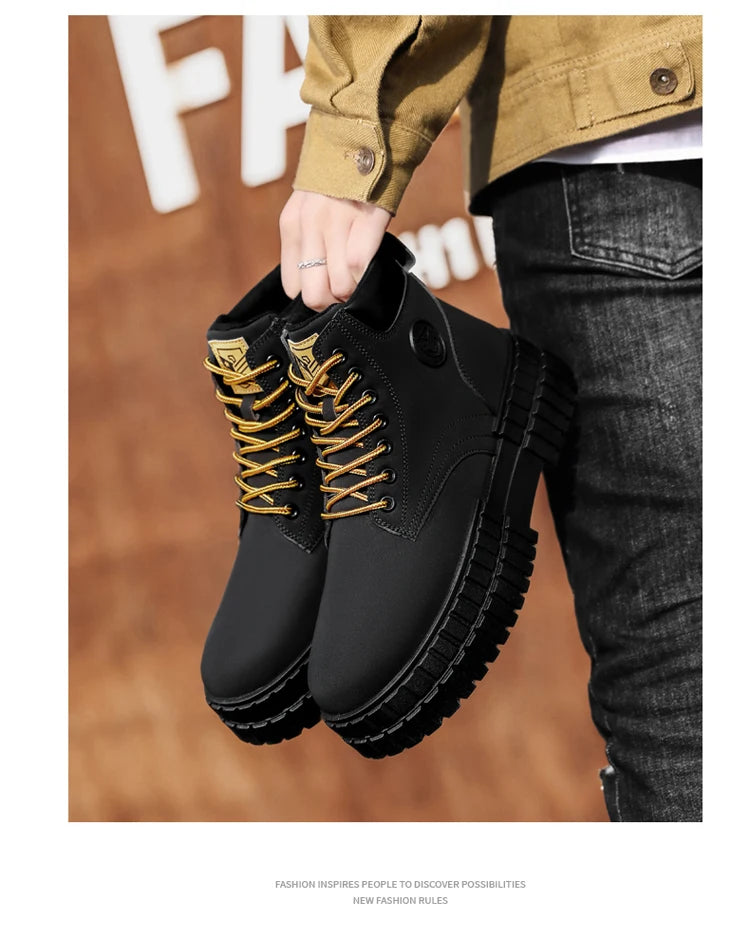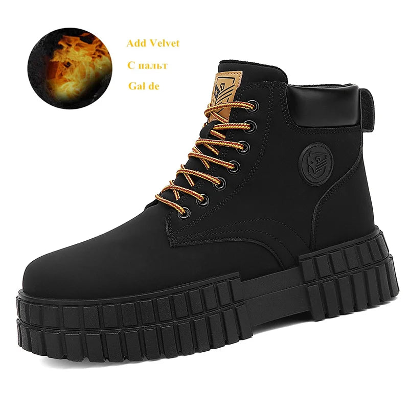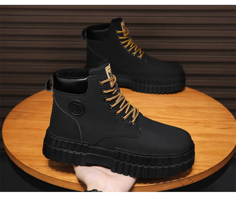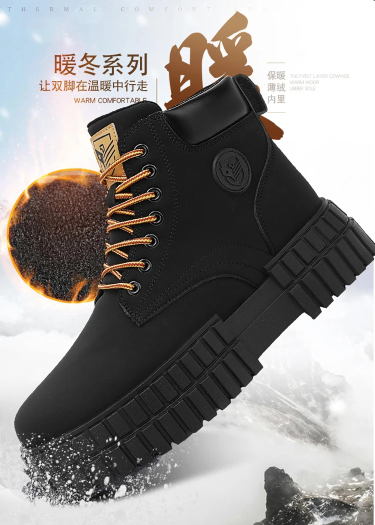 Winter Plush Warm Men's Boots Khaki Fashion Tooling Shoes for Men Comfort Non-slip Platform Boots Man Ankle Boots botas hombre