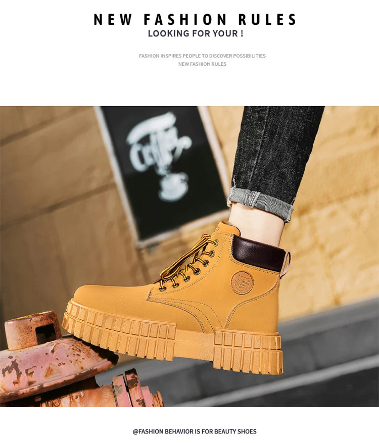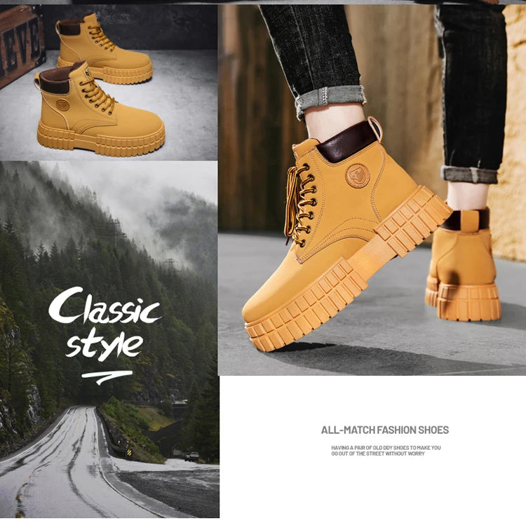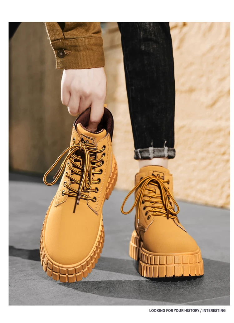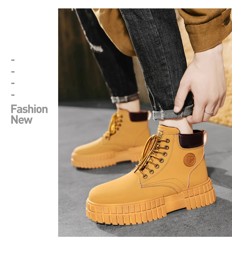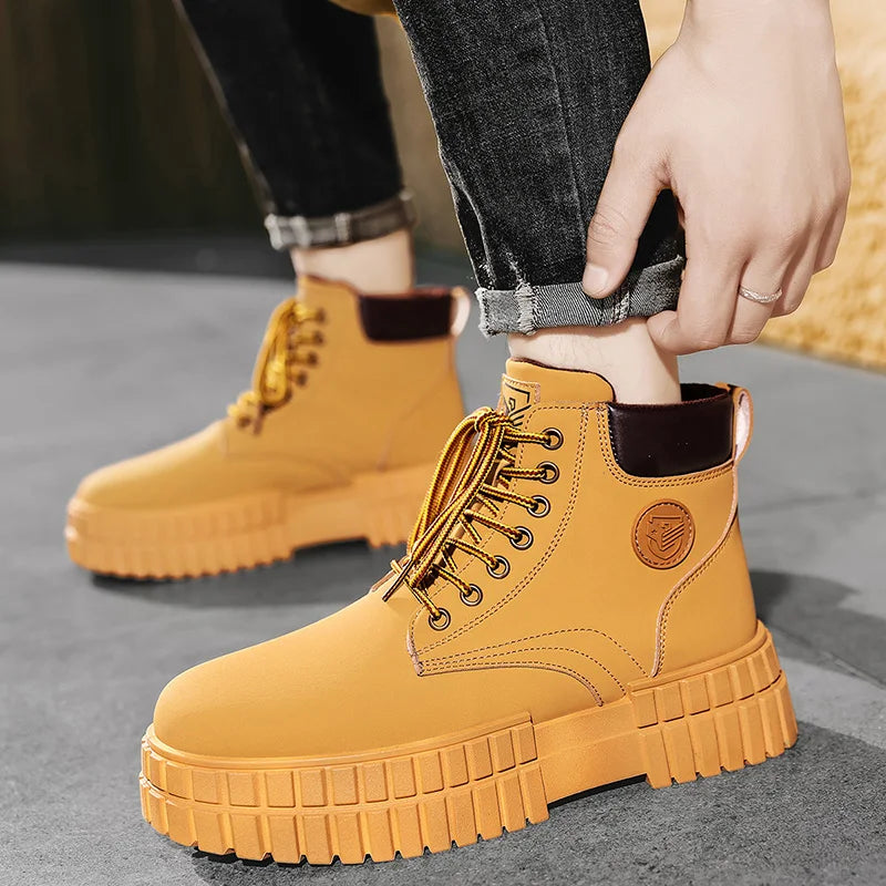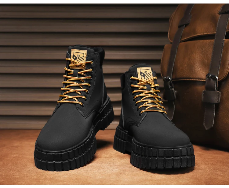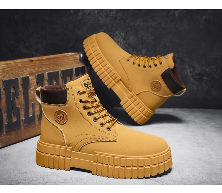 Winter Plush Warm Men's Boots Khaki Fashion Tooling Shoes for Men Comfort Non-slip Platform Boots Man Ankle Boots botas hombre