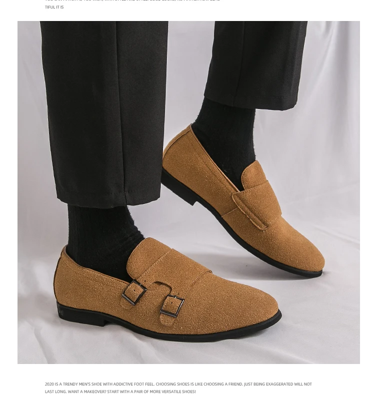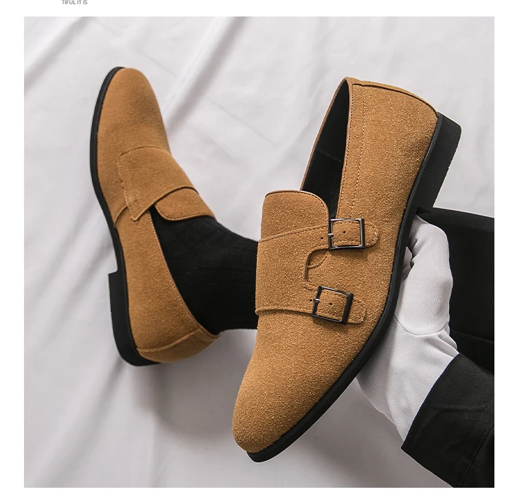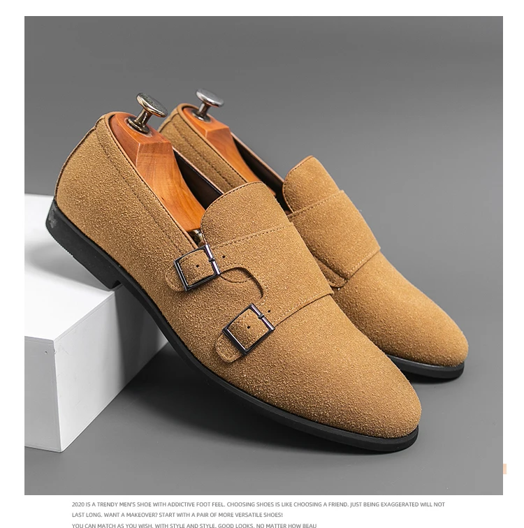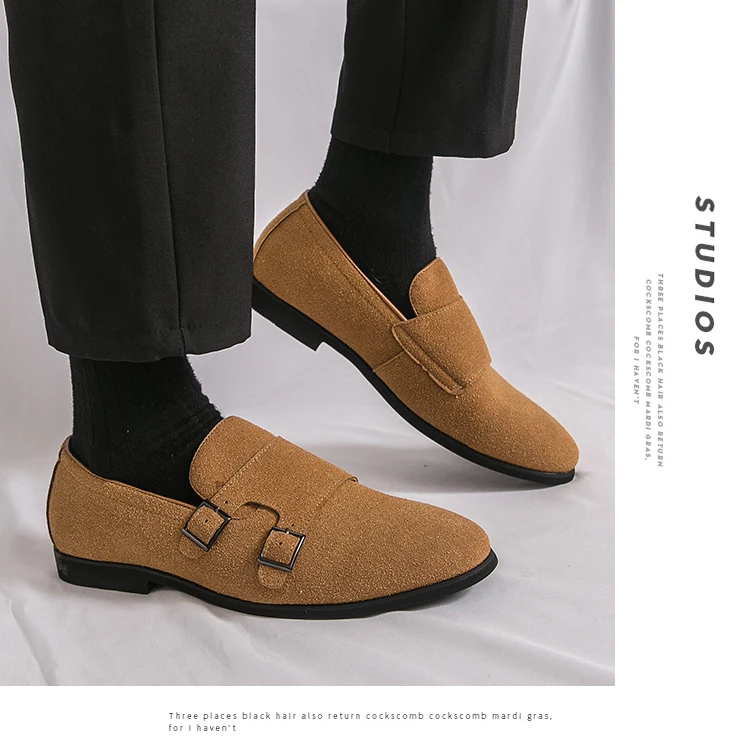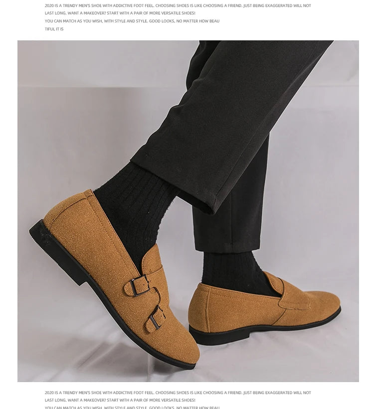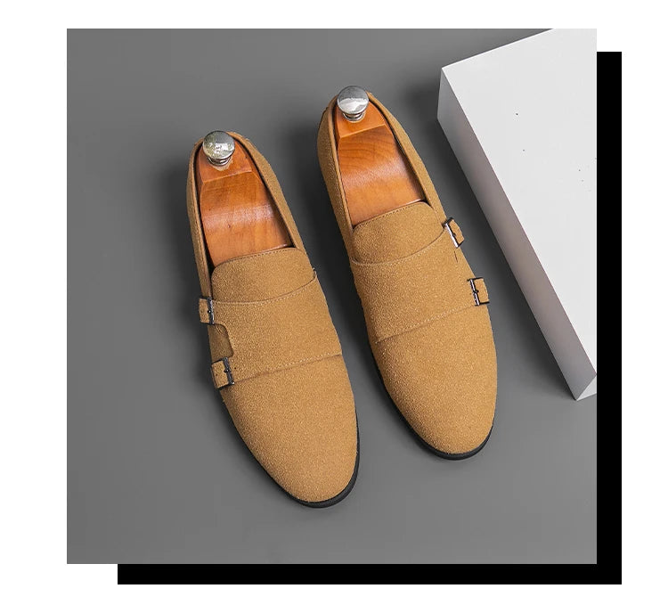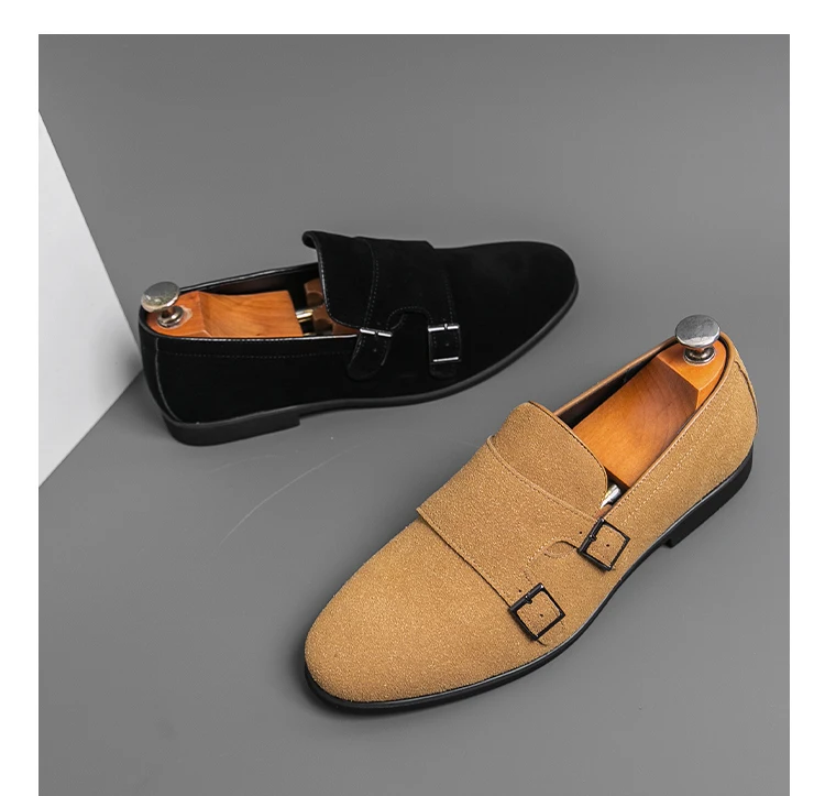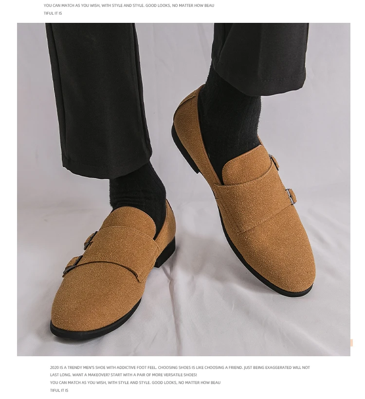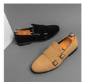 Yellow Double Buckle Monk Shoes Men Comfortable Slip-On Suede Leather Shoes Man Lightweight Flat Men's Dress Shoes Big Size 46