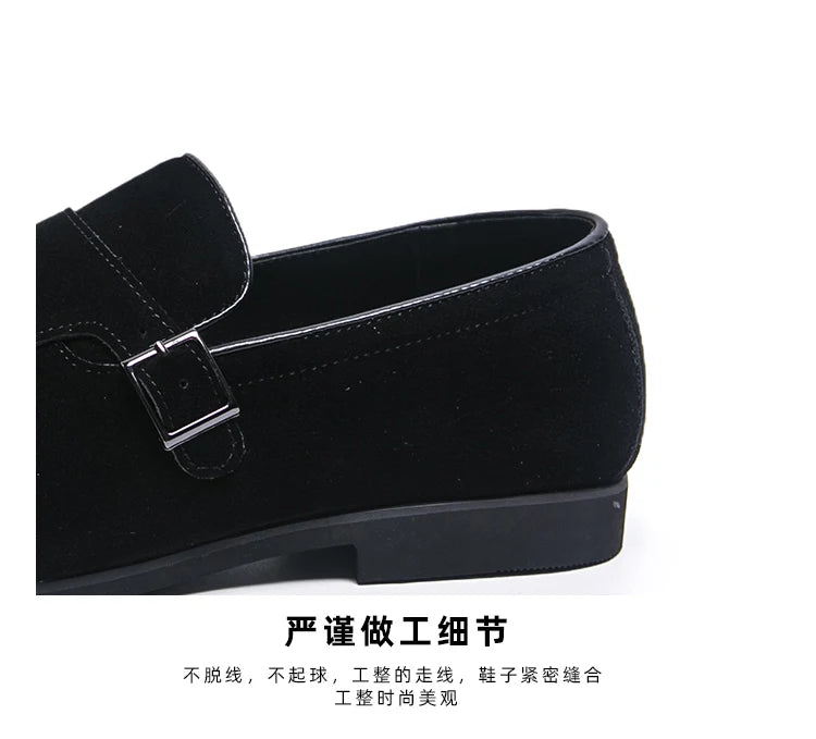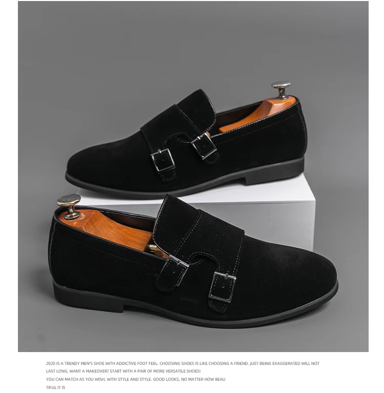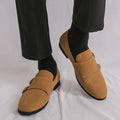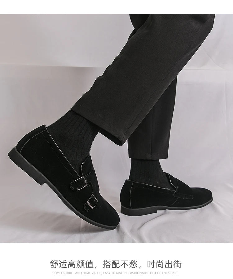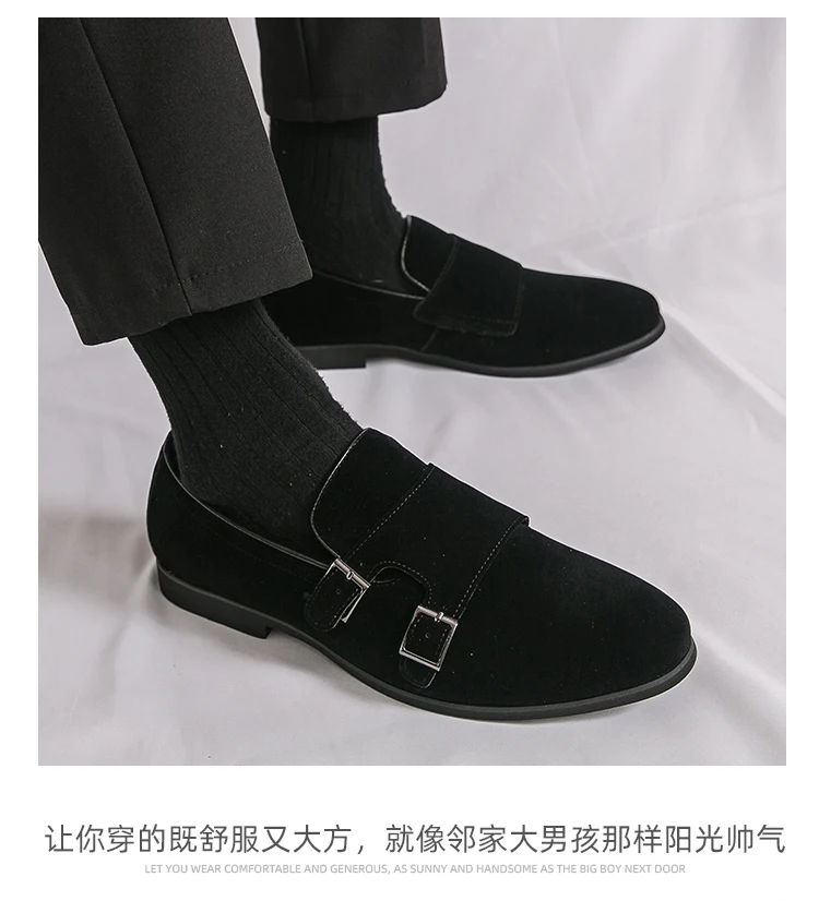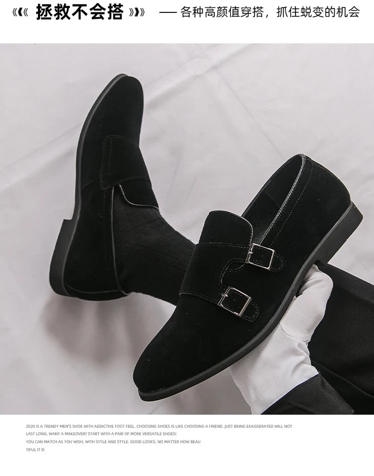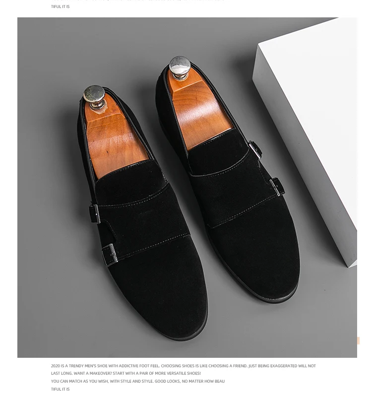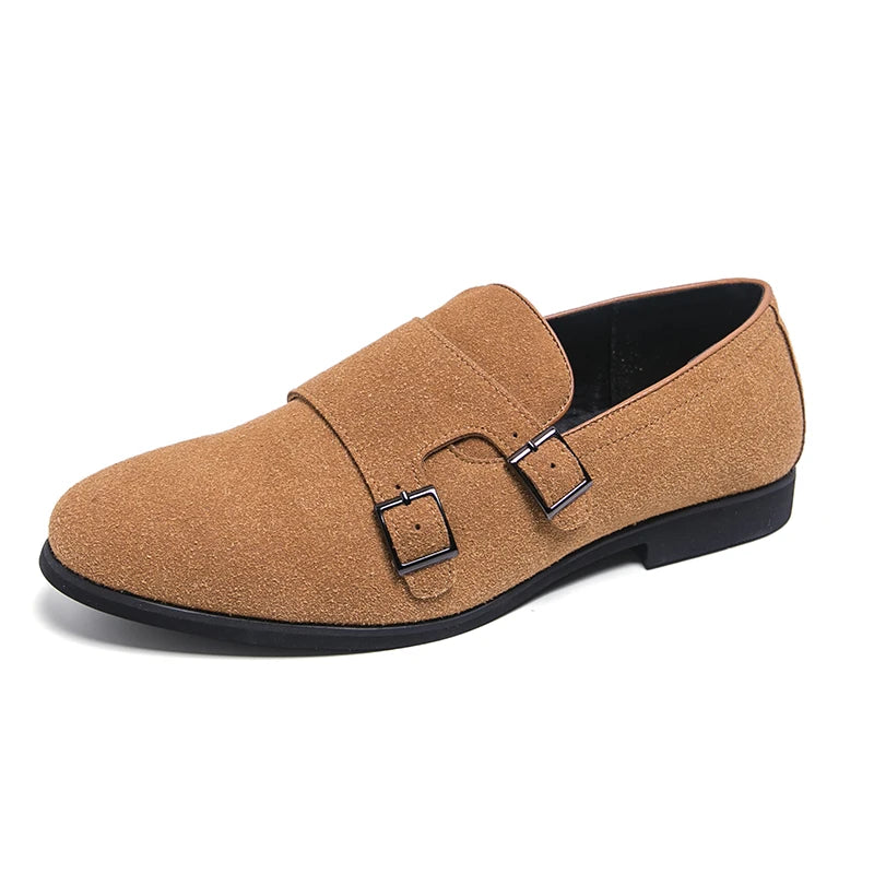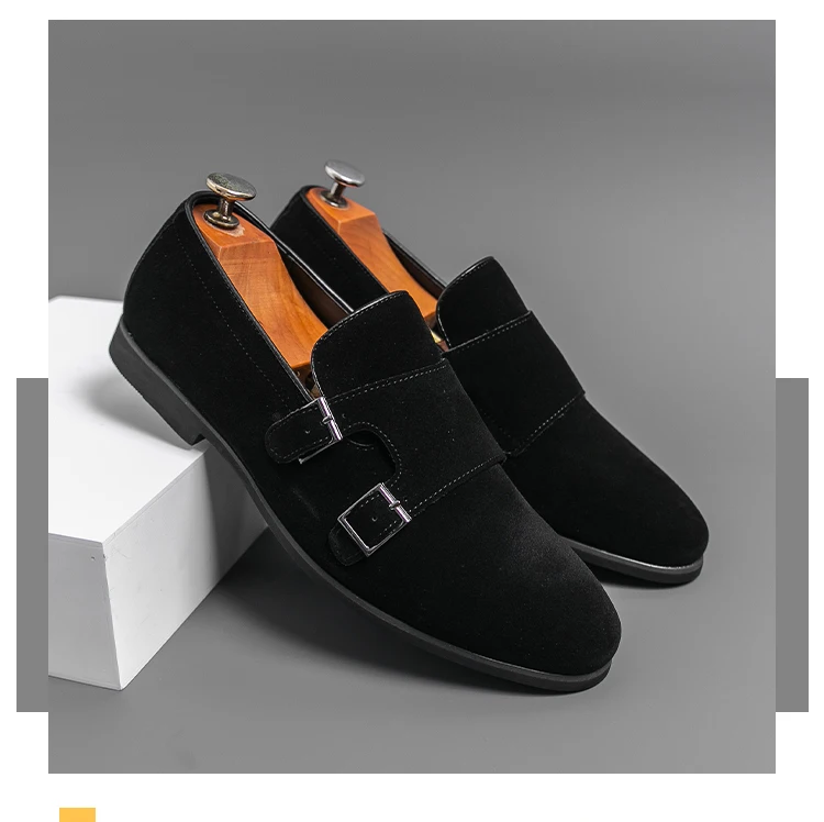 Yellow Double Buckle Monk Shoes Men Comfortable Slip-On Suede Leather Shoes Man Lightweight Flat Men's Dress Shoes Big Size 46