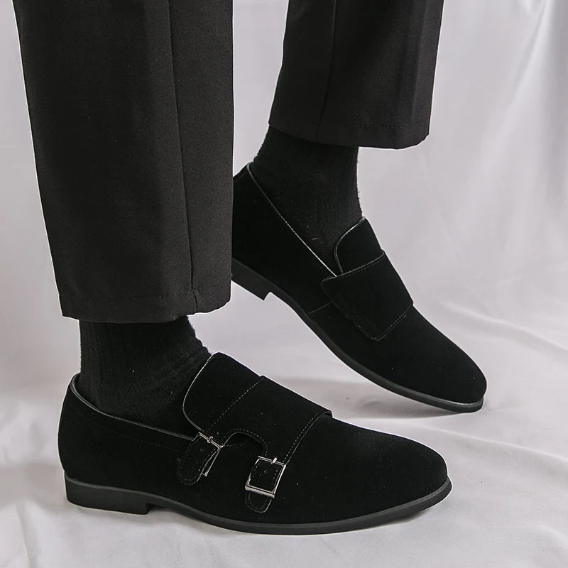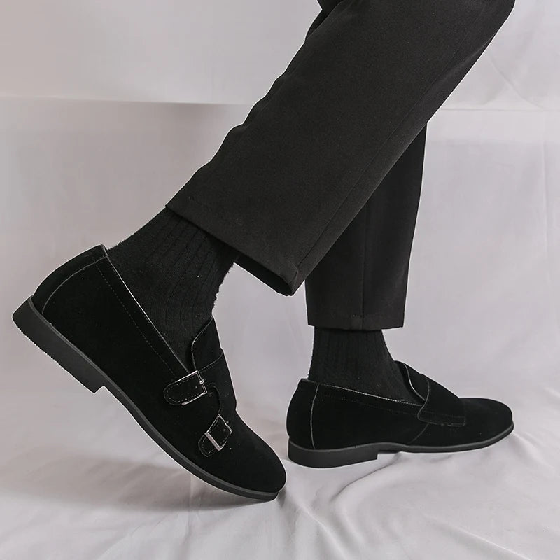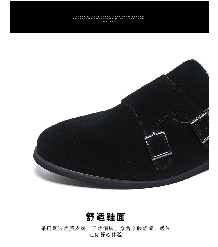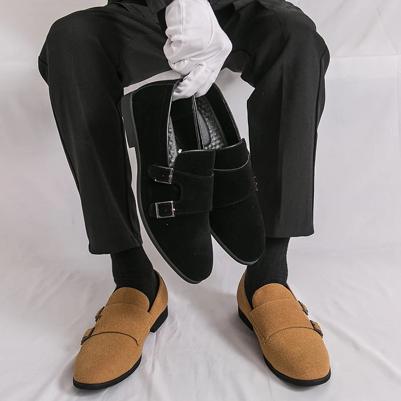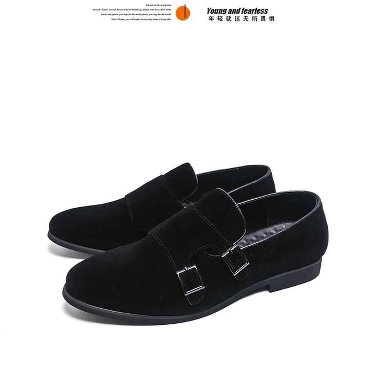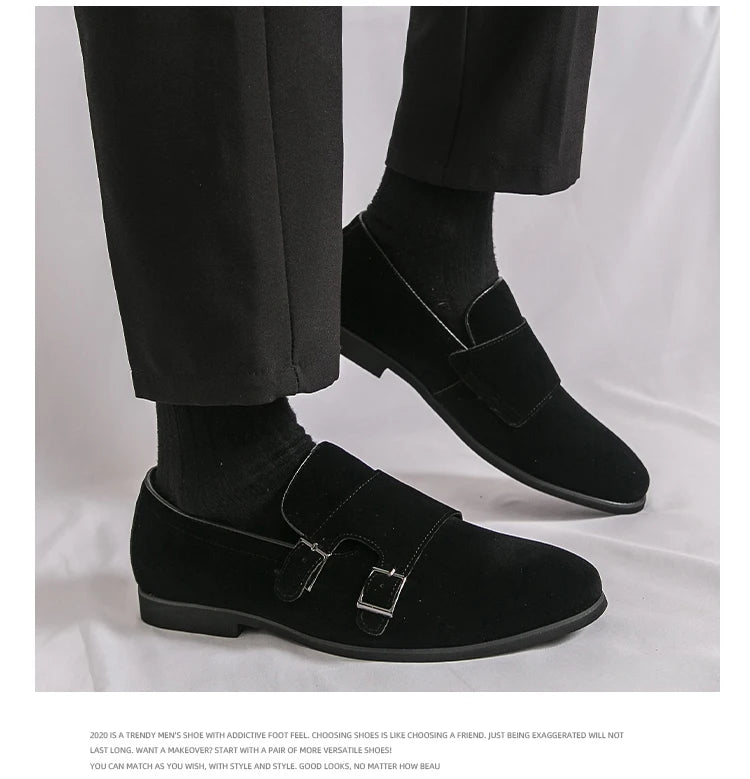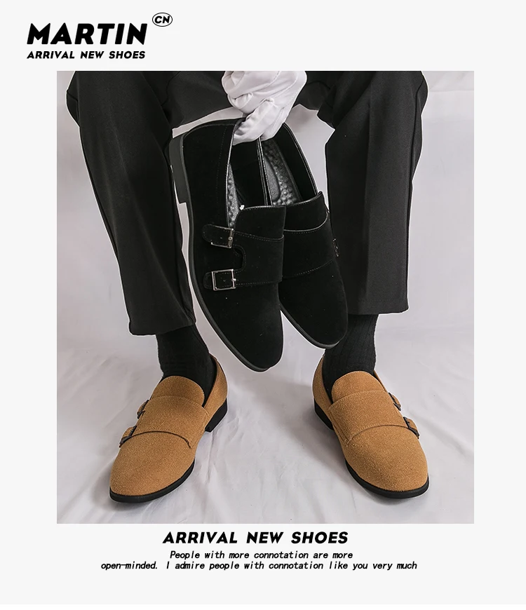 Yellow Double Buckle Monk Shoes Men Comfortable Slip-On Suede Leather Shoes Man Lightweight Flat Men's Dress Shoes Big Size 46
